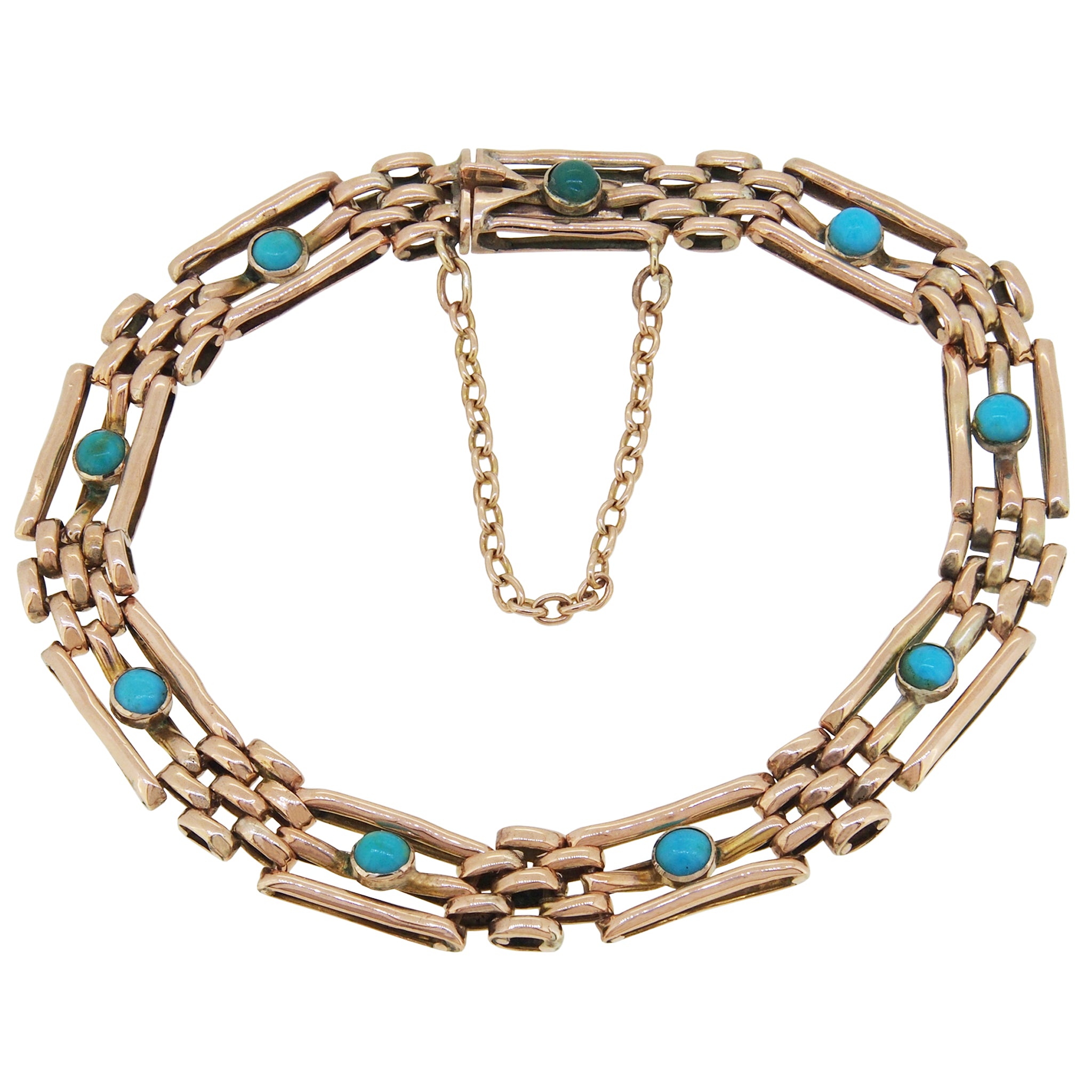 An Edwardian, 9ct yellow gold, turquoise set gate link bracelet.