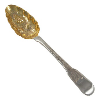 A Georgian, silver berry spoon with a gilded bowl.