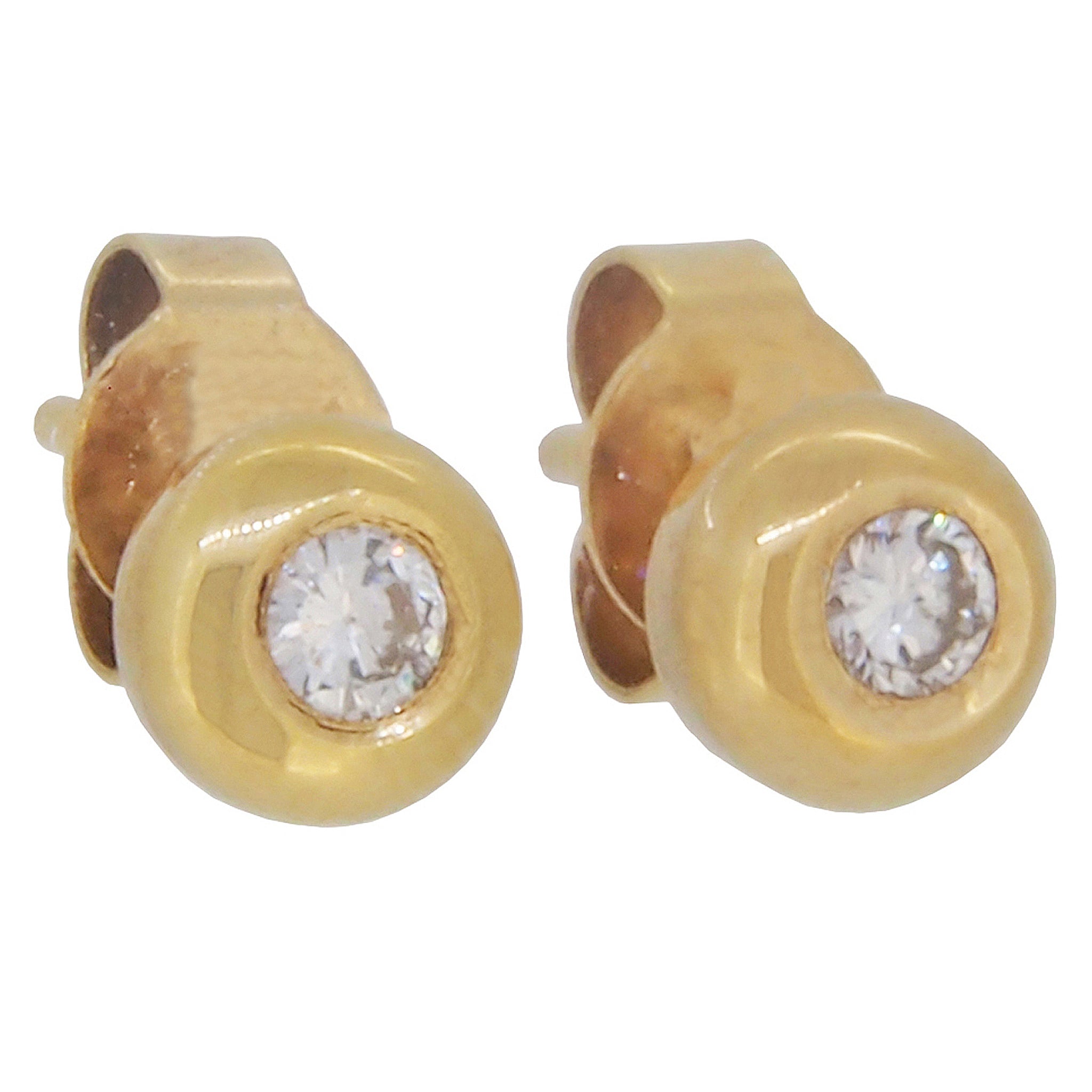 A pair of modern, 18ct yellow gold, diamond set stud earrings.