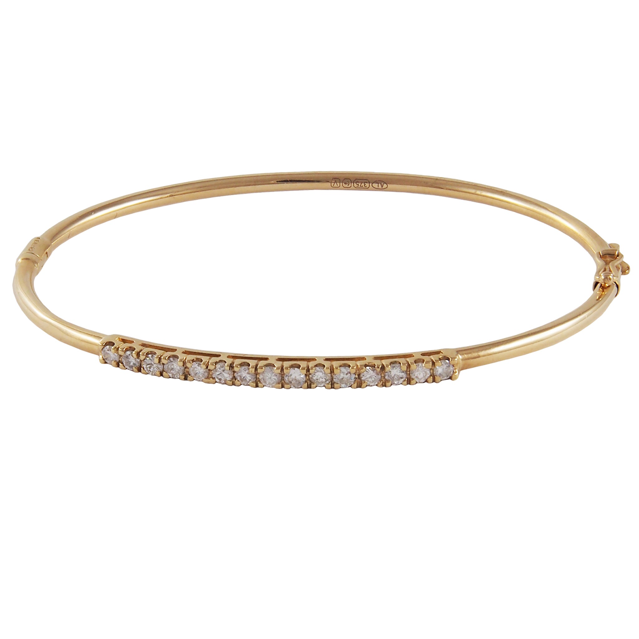 A 9ct yellow gold, diamond set, fifteen stone, half hoop hinged bangle.