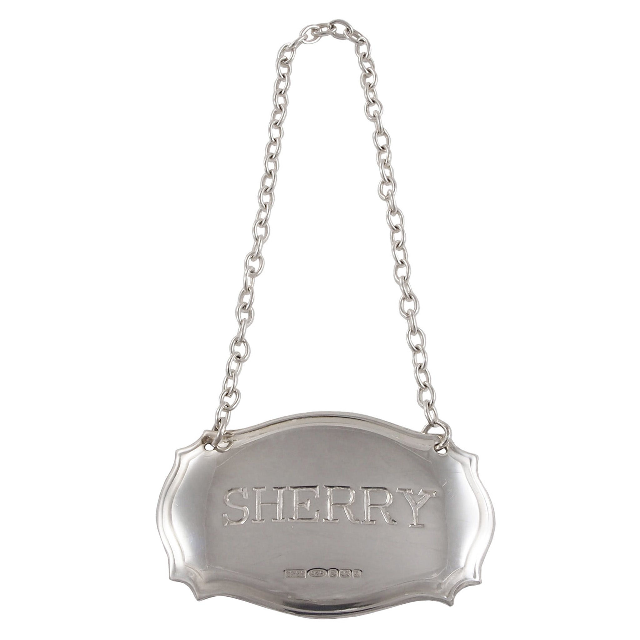 A modern, silver, Chippendale style Sherry Decanter Label.