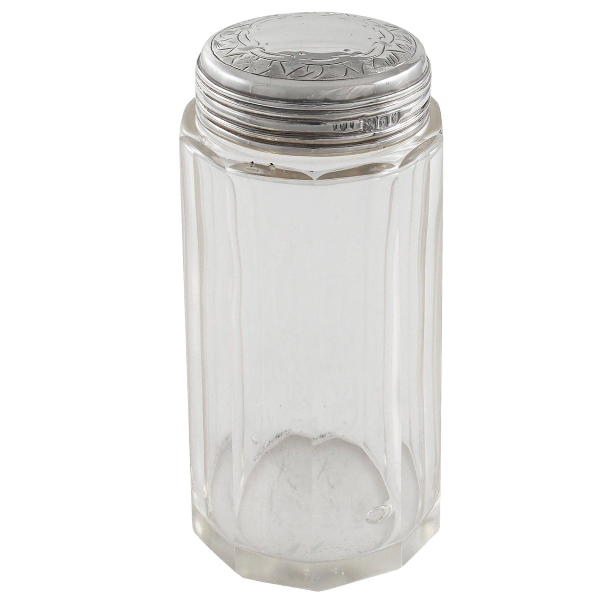 An Edwardian, glass jar with a silver lid.