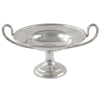 An Edwardian, silver, circular, plain tazza dish with two handles.