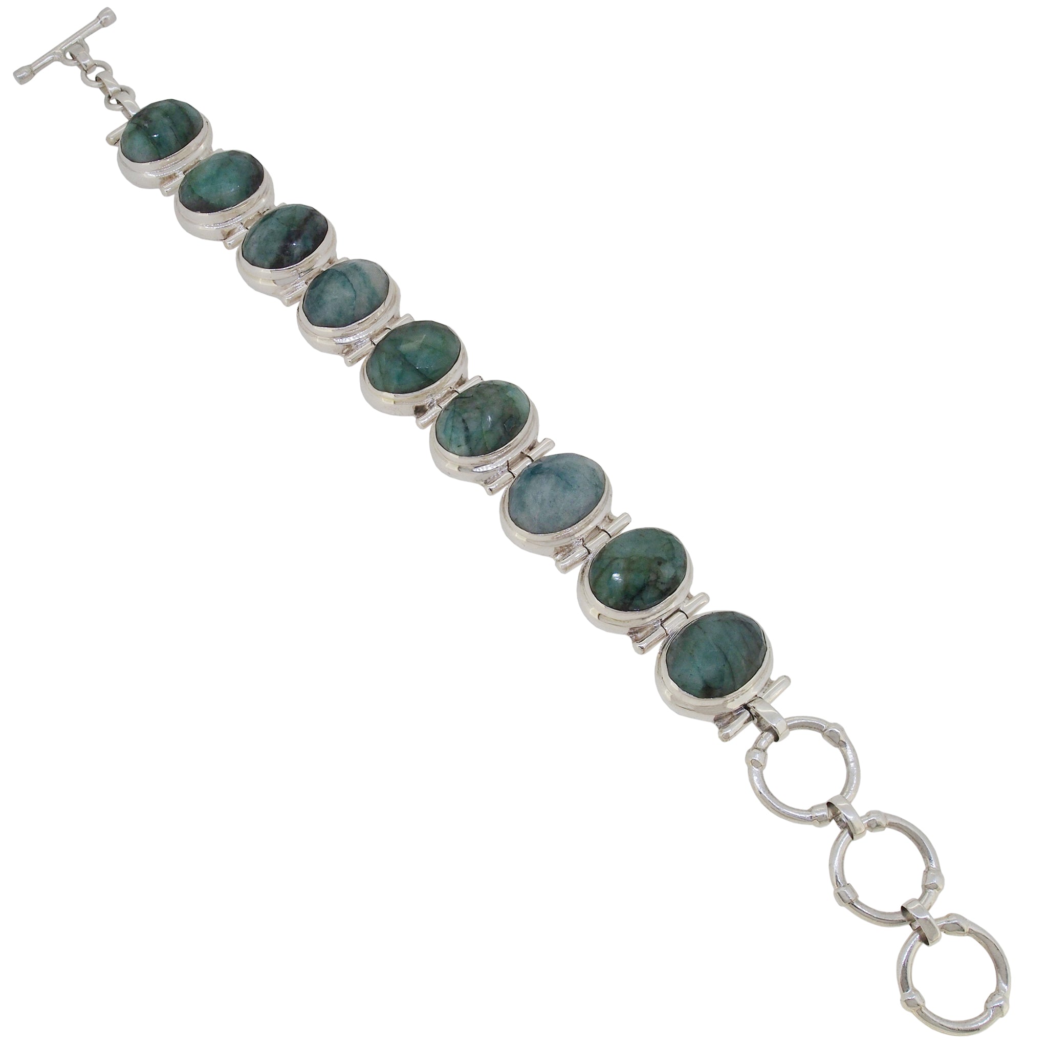 A modern, 925 silver, green serpentine set bracelet.