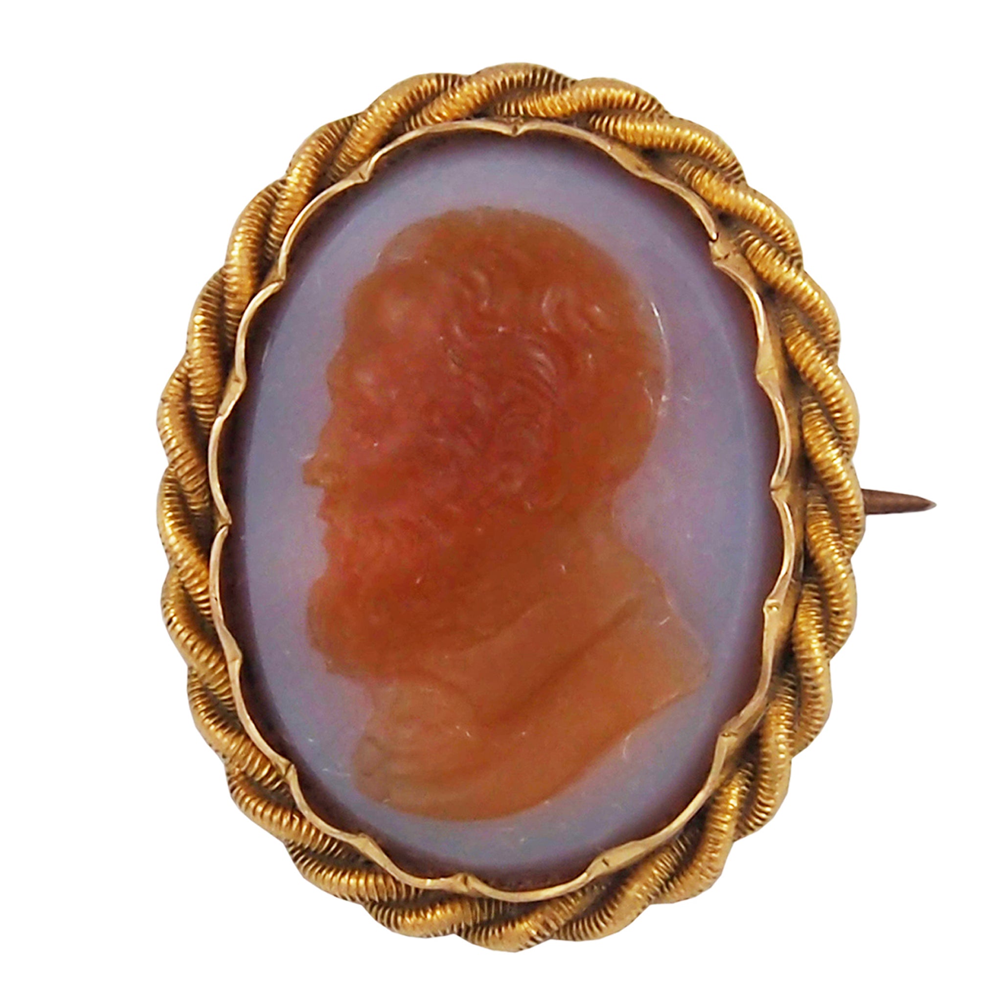 A Victorian, yellow gold cameo brooch featuring the profile of a Gentleman.