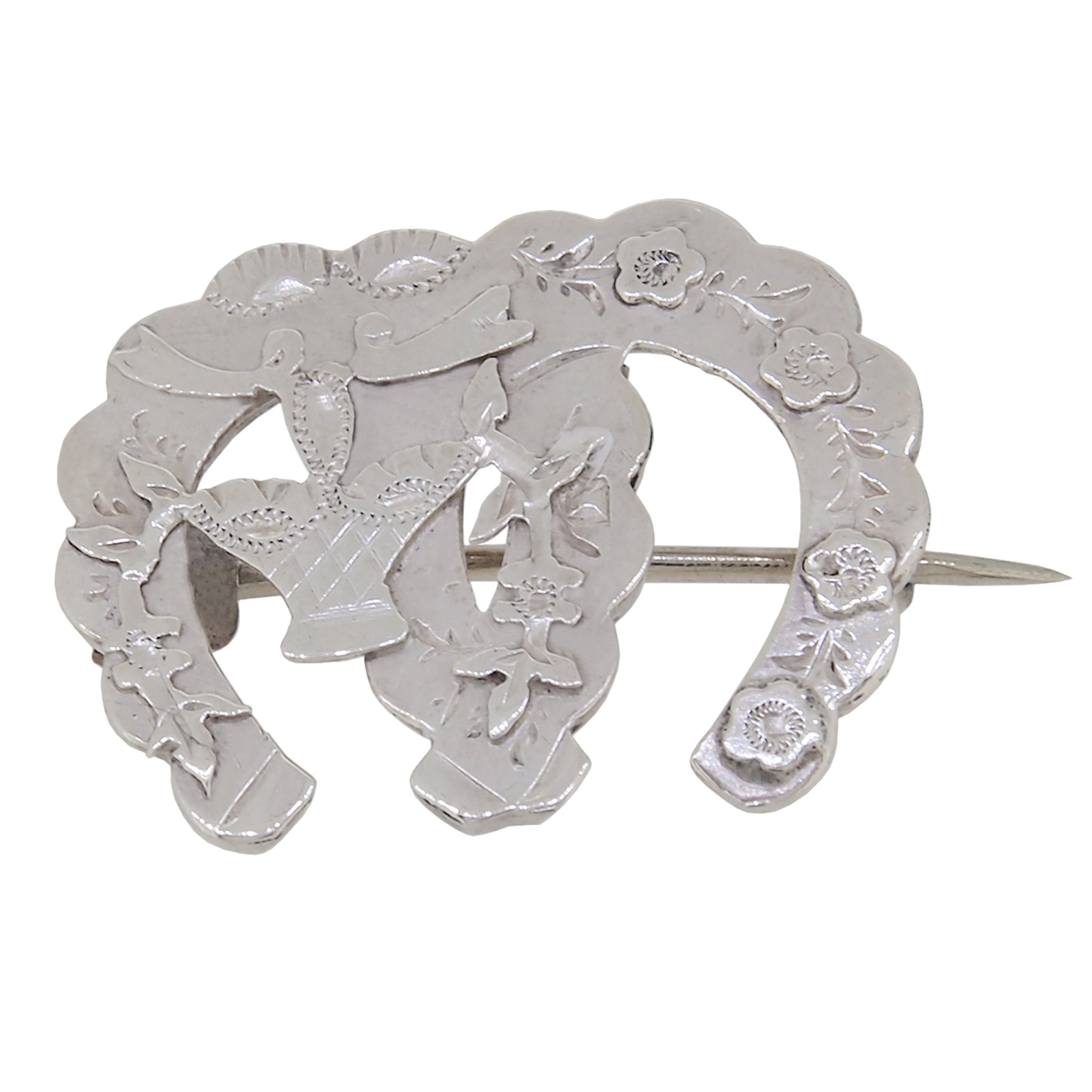A Victorian, silver, floral, double horseshoe brooch with floral decoration.