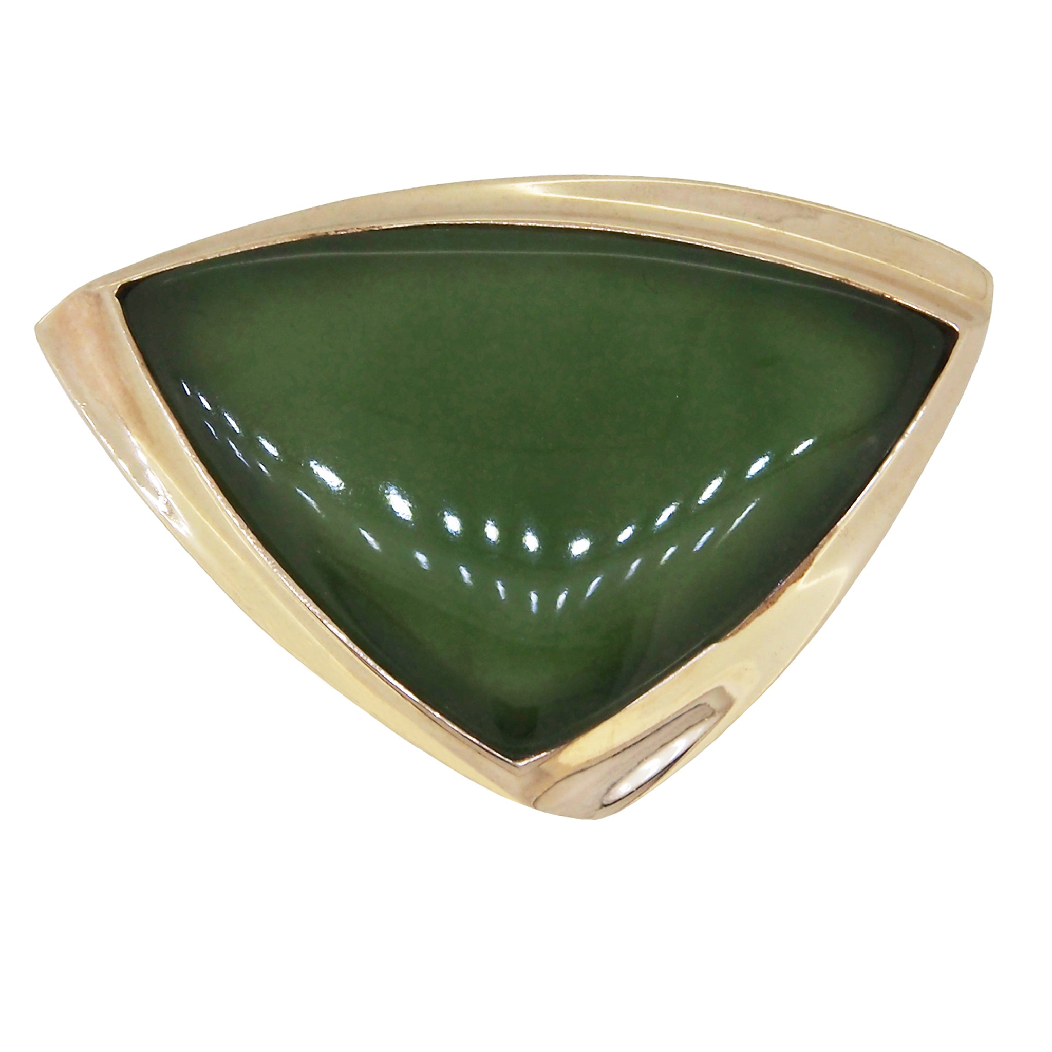 An early 20th century, 9ct yellow gold, nephrite set brooch.