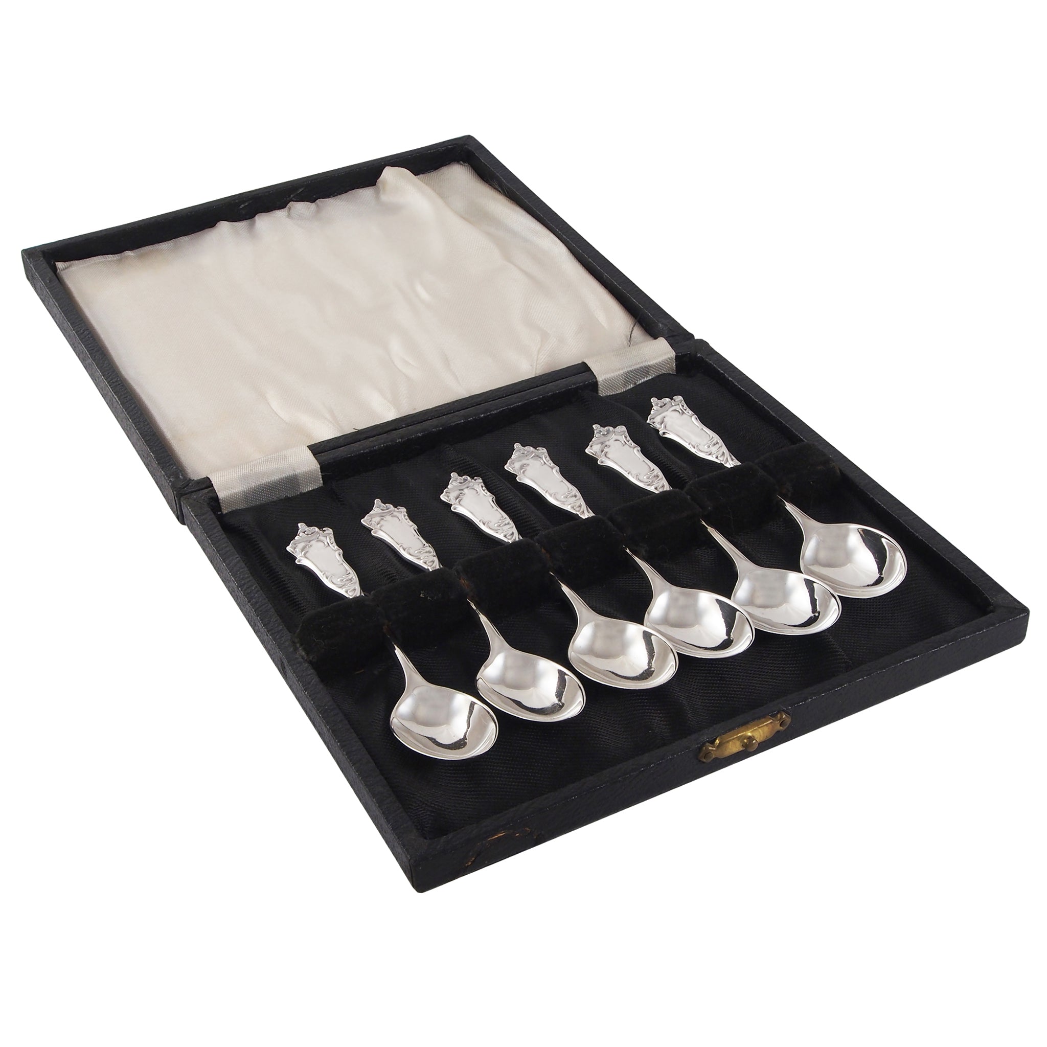 Six mid-20th century, silver teaspoons & fitted case.