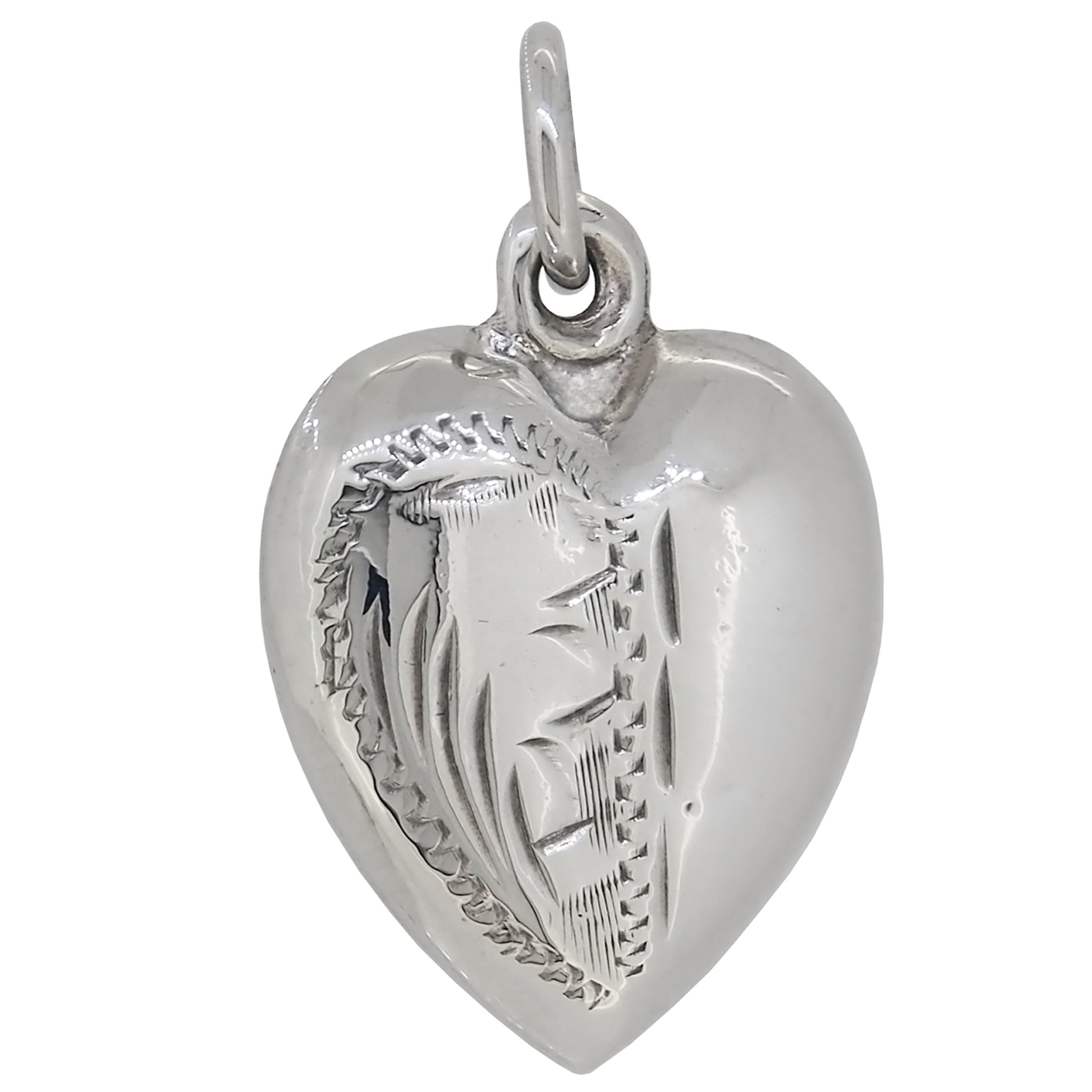 A mid-20th century, silver, half engraved, heart shaped pendant.