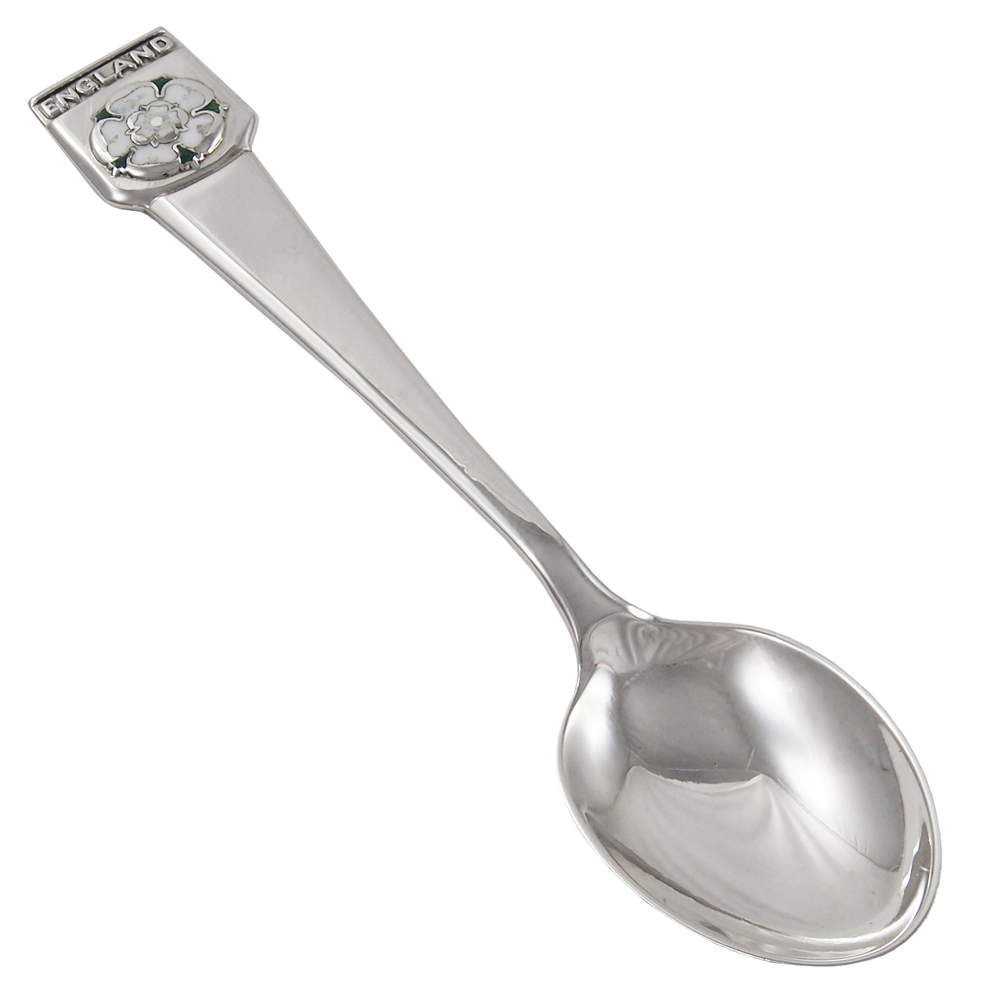 A modern, silver, enamel set, England souvenir teaspoon.