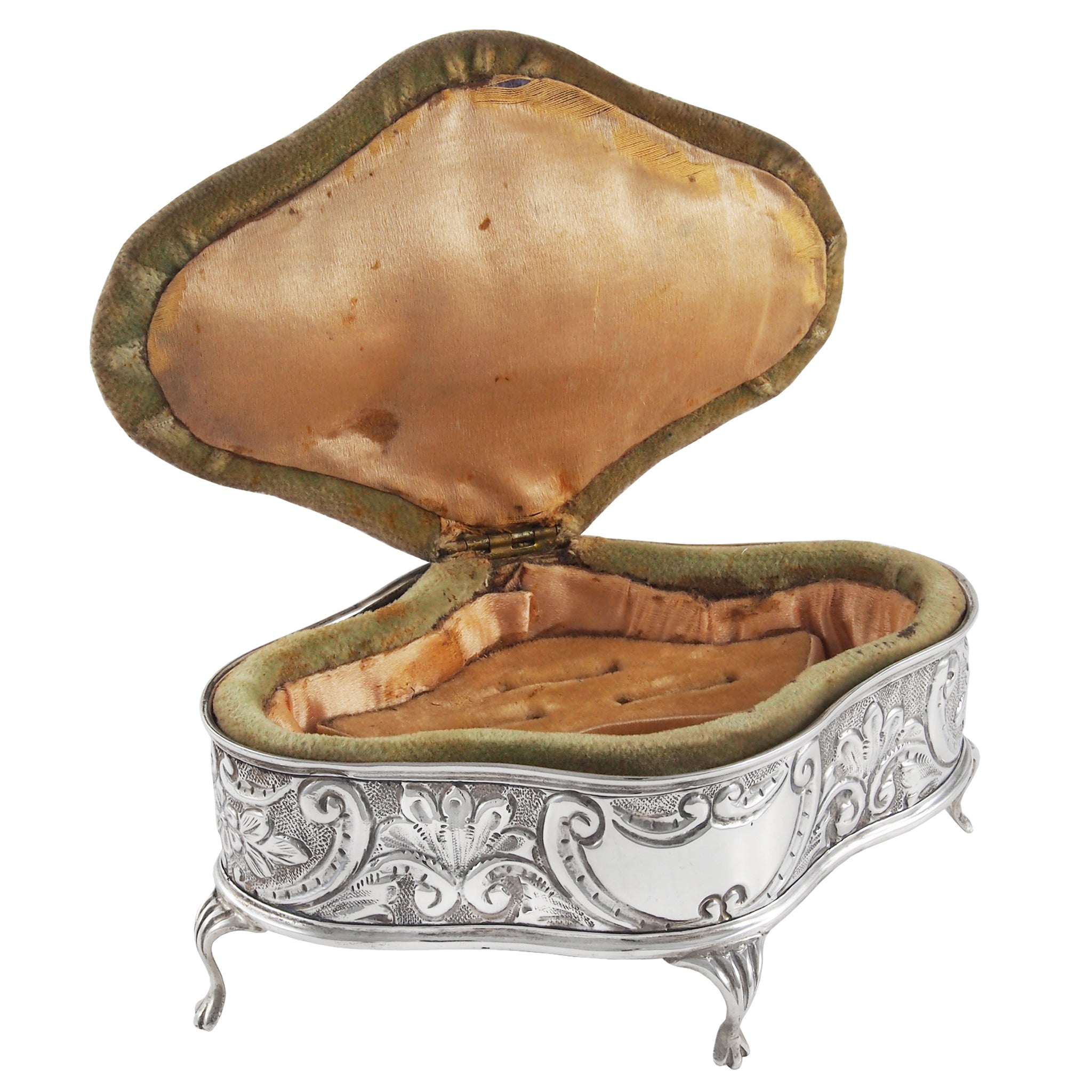 An Edwardian, silver trinket box with a cushion covered lid & fabric lined interior.