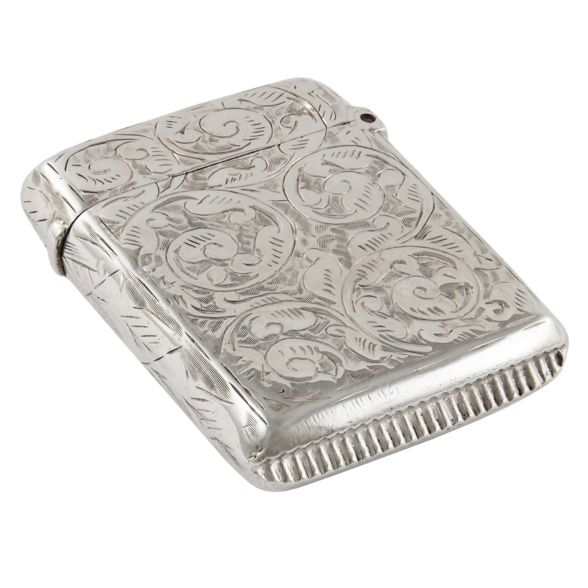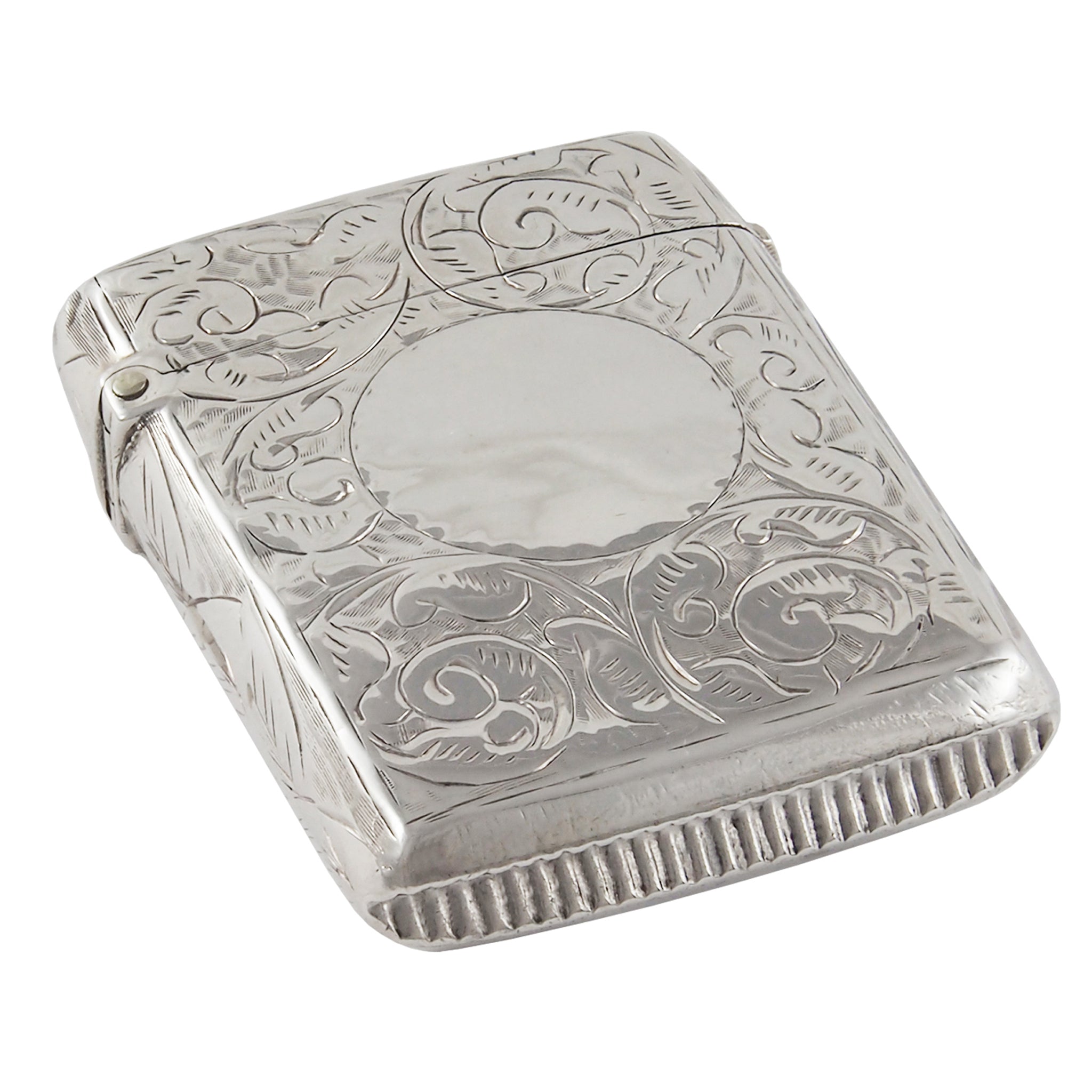 A Victorian, silver vesta case with a circular cartouche & floral design front & back.