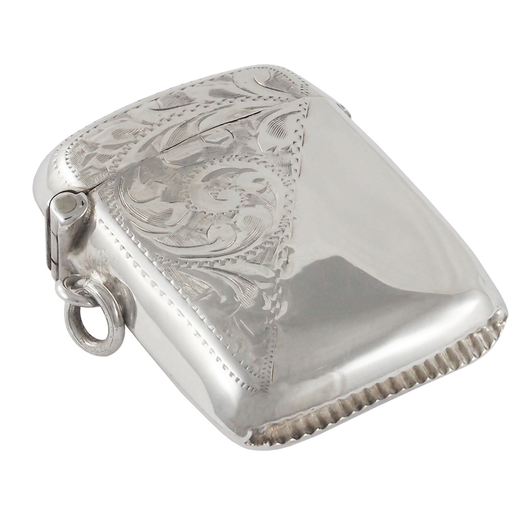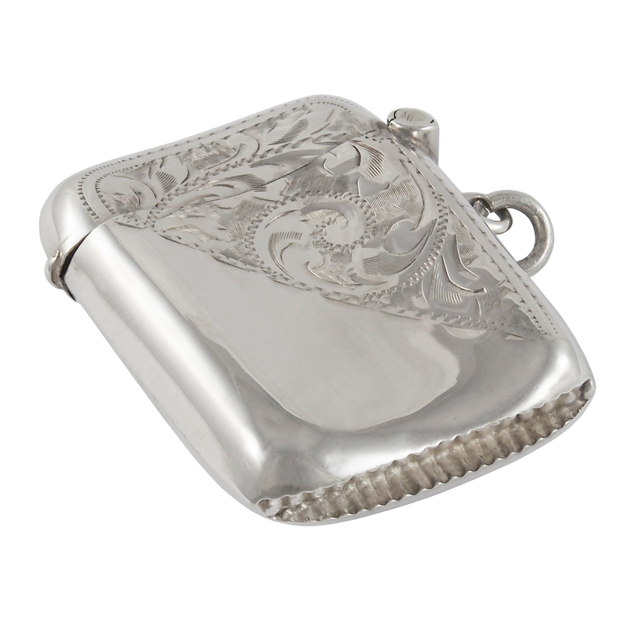 An Edwardian, silver vesta case with floral decoration covering half the front & back sides.