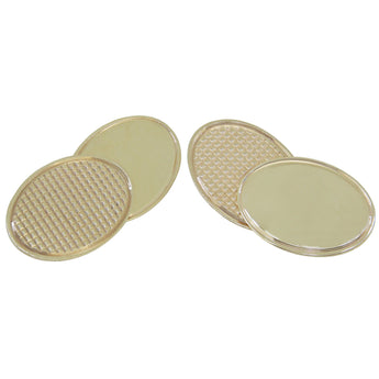 A pair of mid-20th century, 9ct yellow gold, engine turned, chain link oval cufflinks.