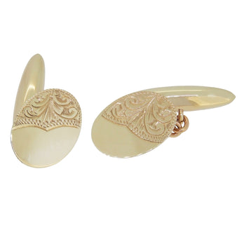 A pair of mid-20th century, 9ct yellow gold, oval chain link cufflinks with torpedo toggles.