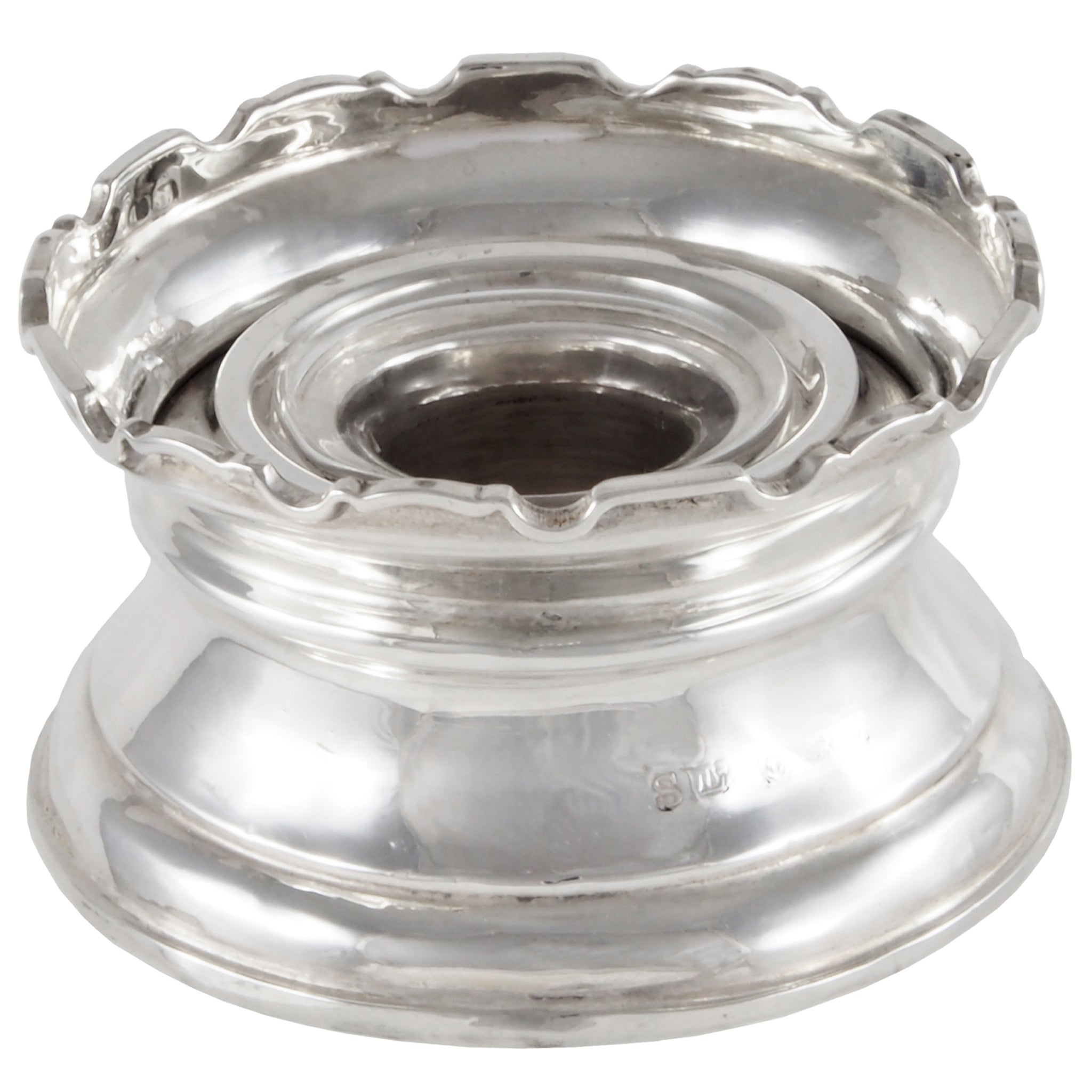 An early 20th century, silver, castellated tower inkwell with a clear glass liner.