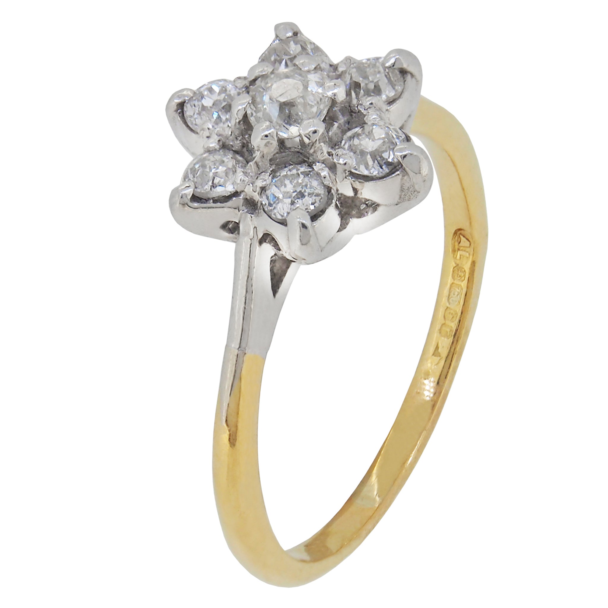 A modern, 18ct yellow & white gold, diamond set cluster ring.