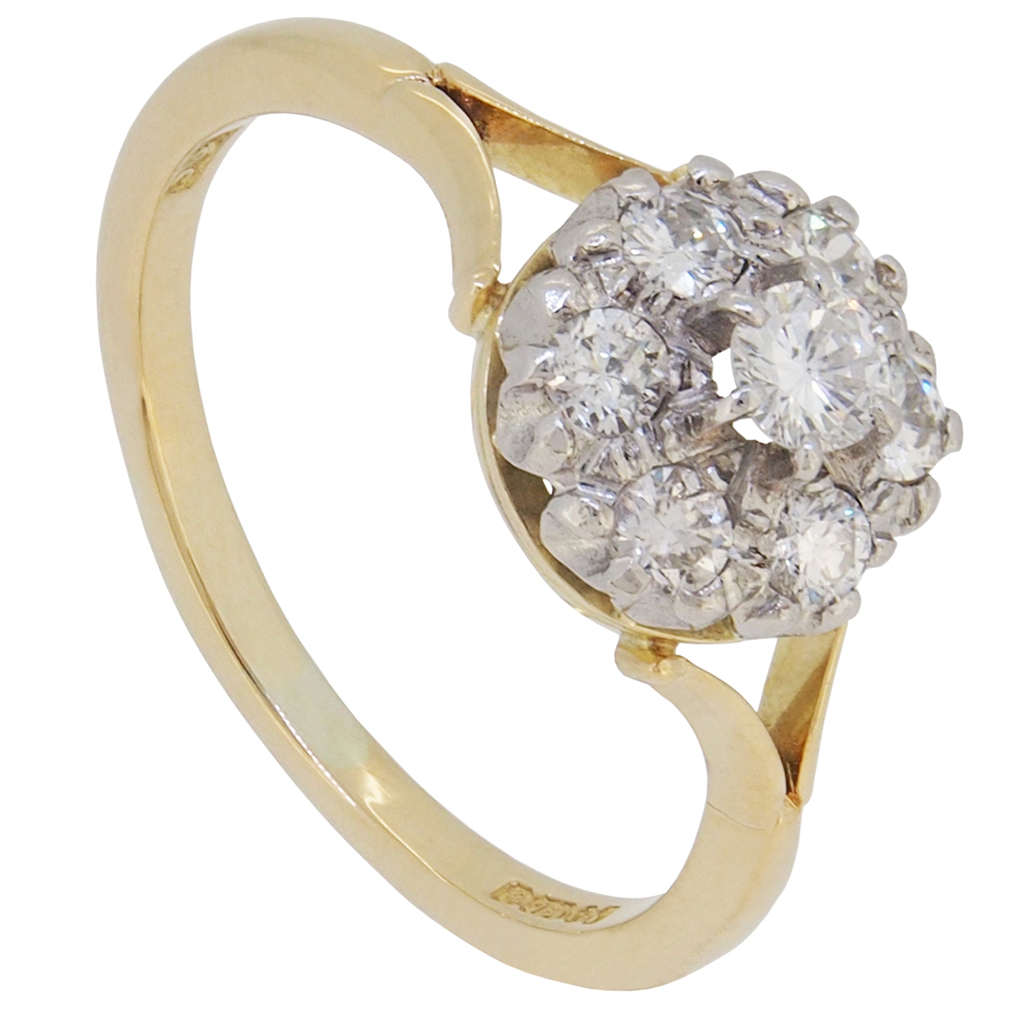 A modern, 18ct yellow gold, diamond set, seven stone cluster ring.