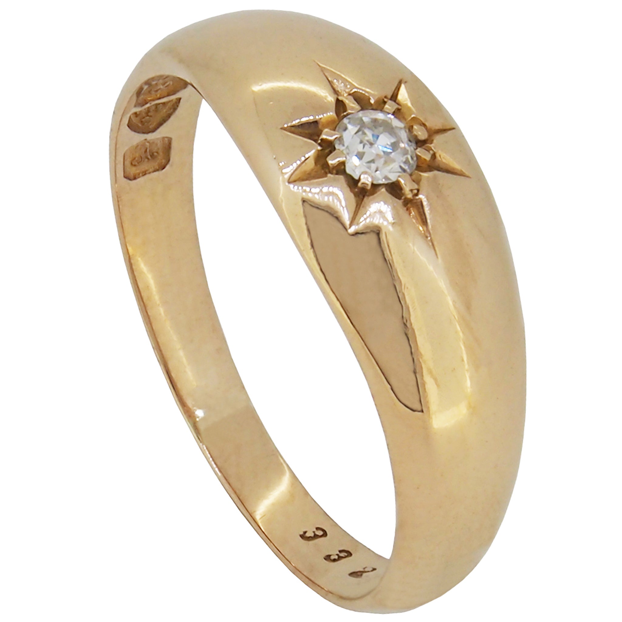 An Edwardian, 18ct yellow gold, diamond gypsy set, single stone ring.