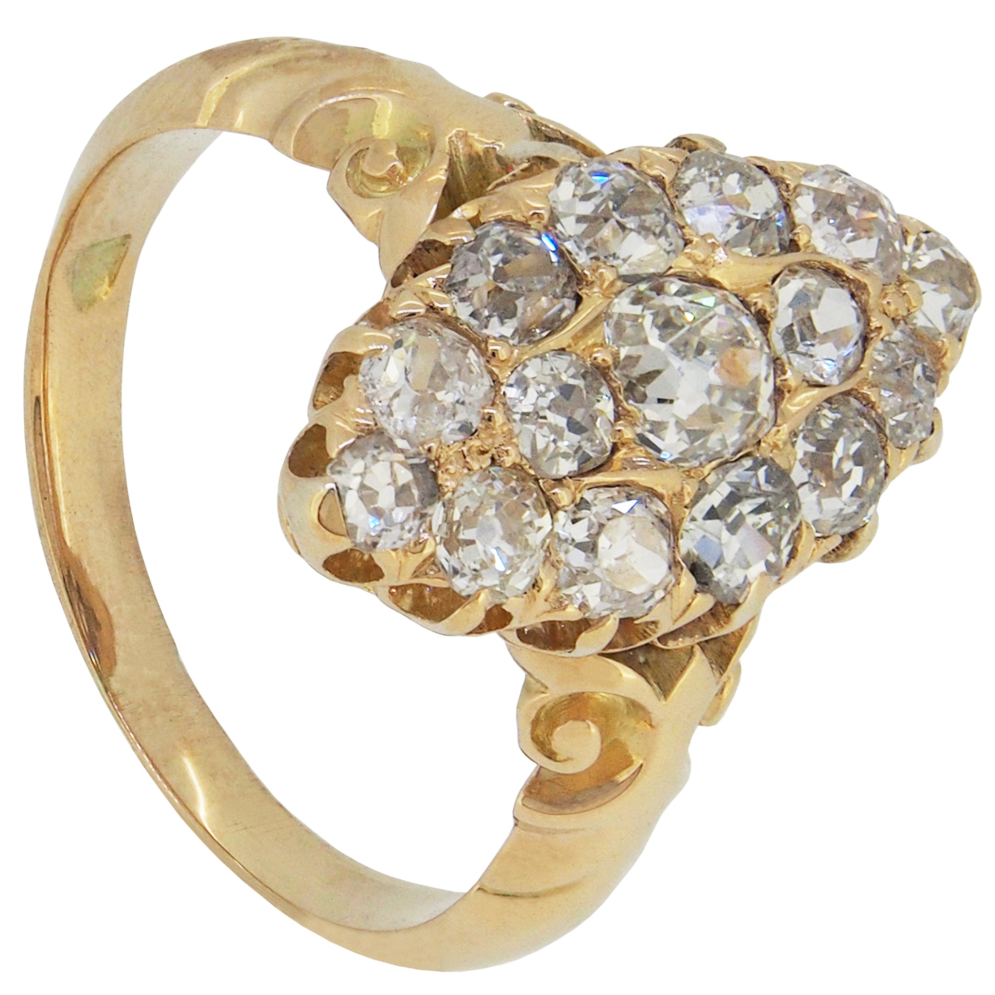 A Victorian, 18ct yellow gold, diamond set, marquise cluster ring.