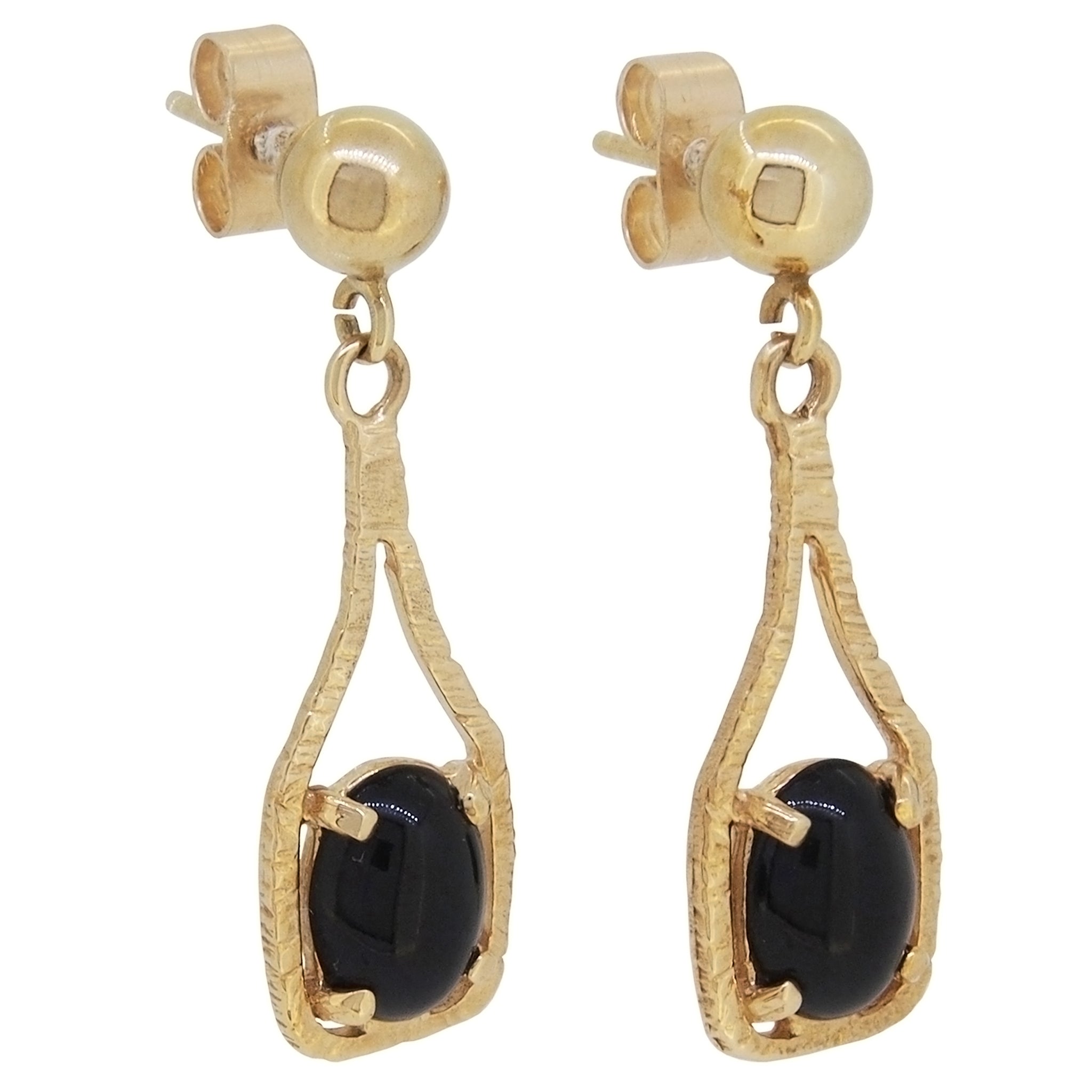 A pair of modern, 14ct yellow gold, black onyx set drop earrings.