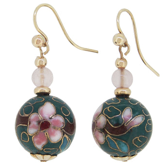 A pair of modern, 9ct yellow gold, pink, red & blue enamel set, floral drop earrings.