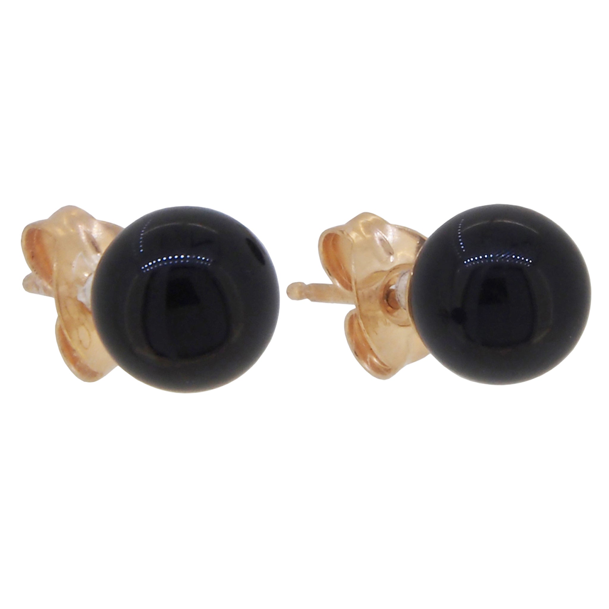 A pair of modern, yellow gold, black onyx set stud earrings.