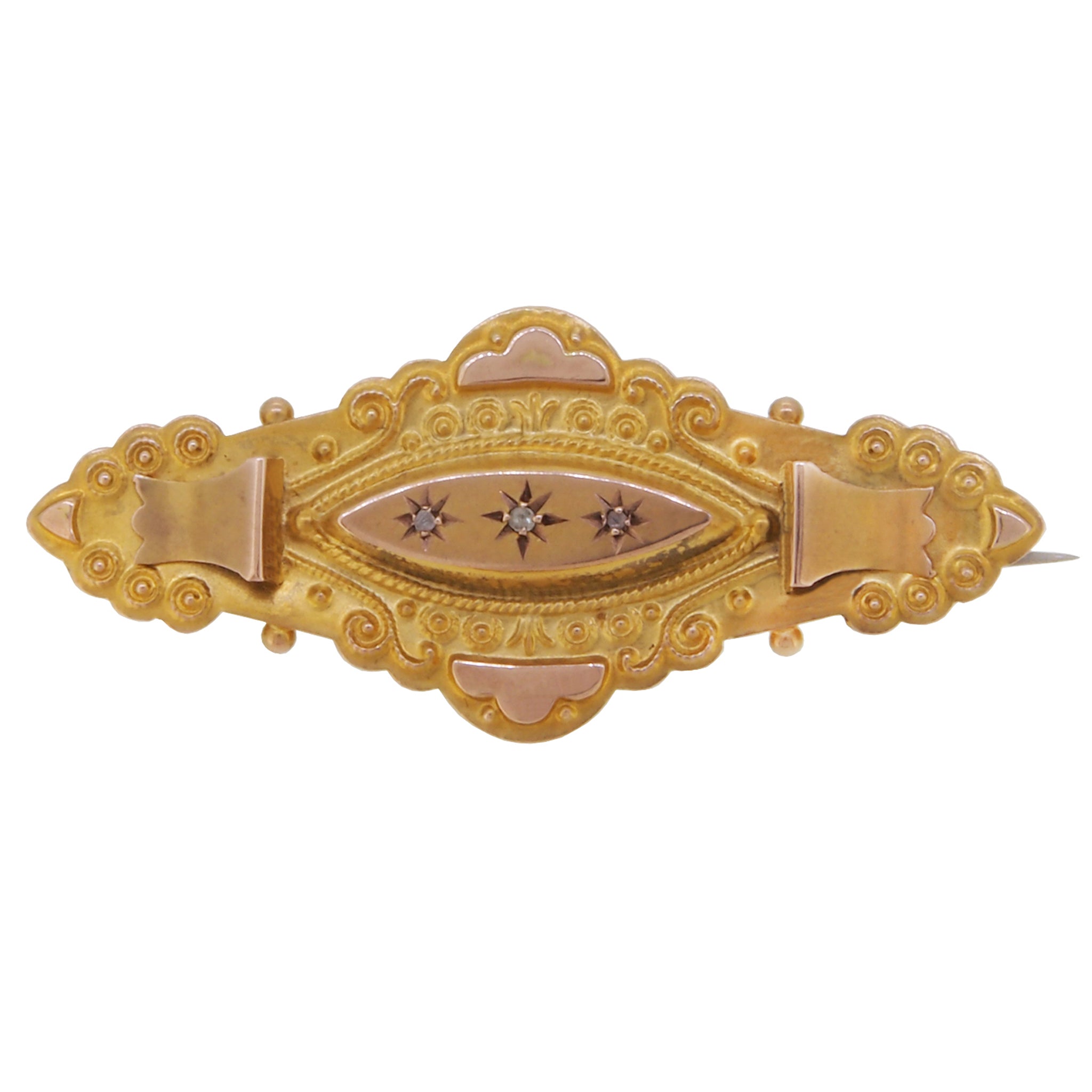 An Edwardian, 9ct yellow gold, diamond set brooch.