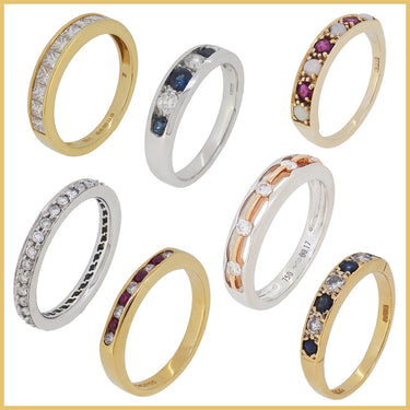 Our Eternity Rings collection features a variety of Antique, Traditional, Vintage & Modern pieces, each symbolising the enduring nature of love. Whether you choose a full eternity ring, with diamonds or gemstones encircling the band, or a half eternity design for a more understated look, these rings are timeless & make for a meaningful addition to any jewellery collection.