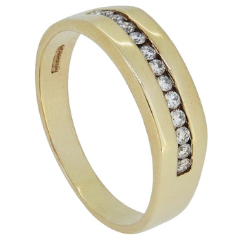 A modern, 9ct yellow gold, diamond set half eternity ring.