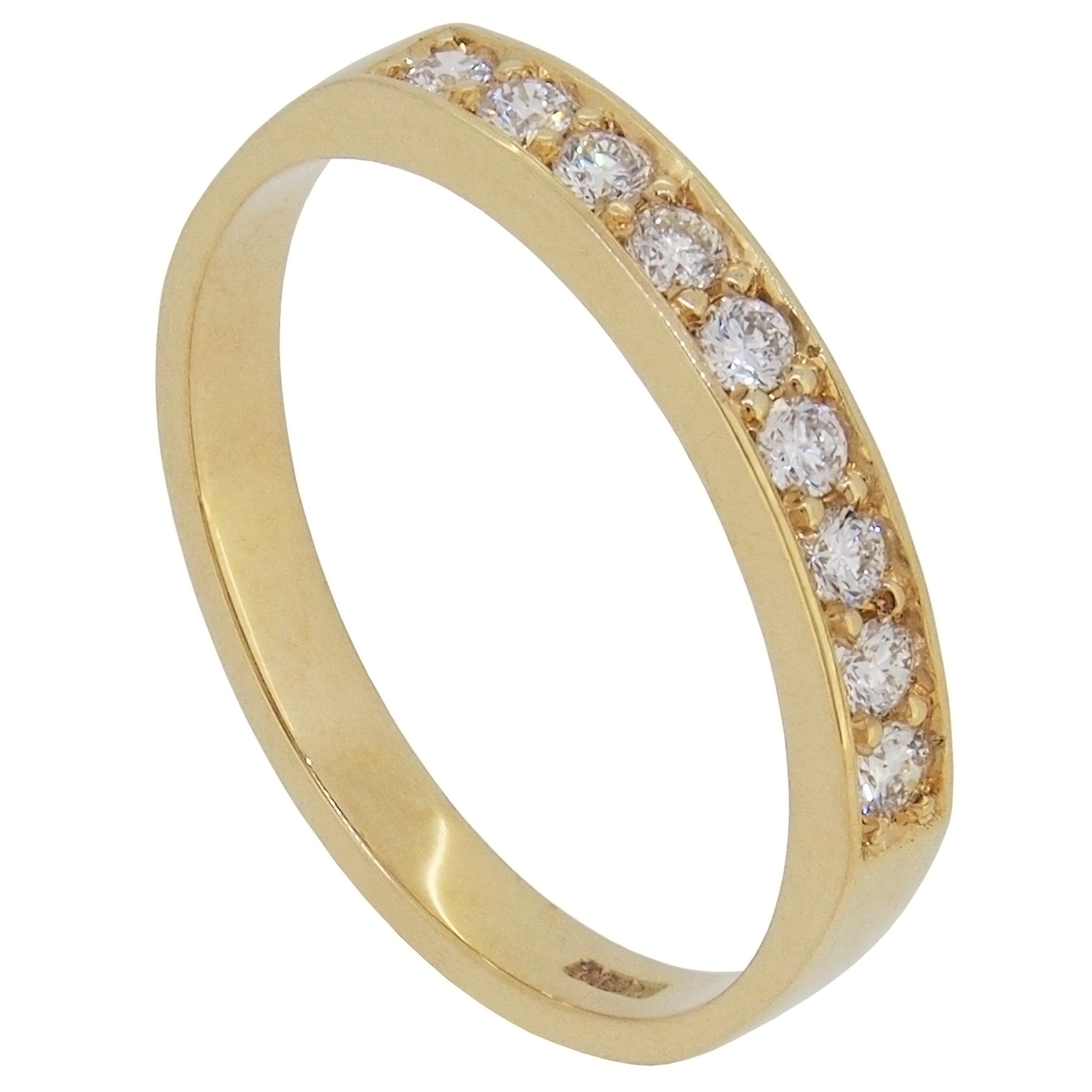 A modern, 18ct yellow gold, diamond set half eternity ring.