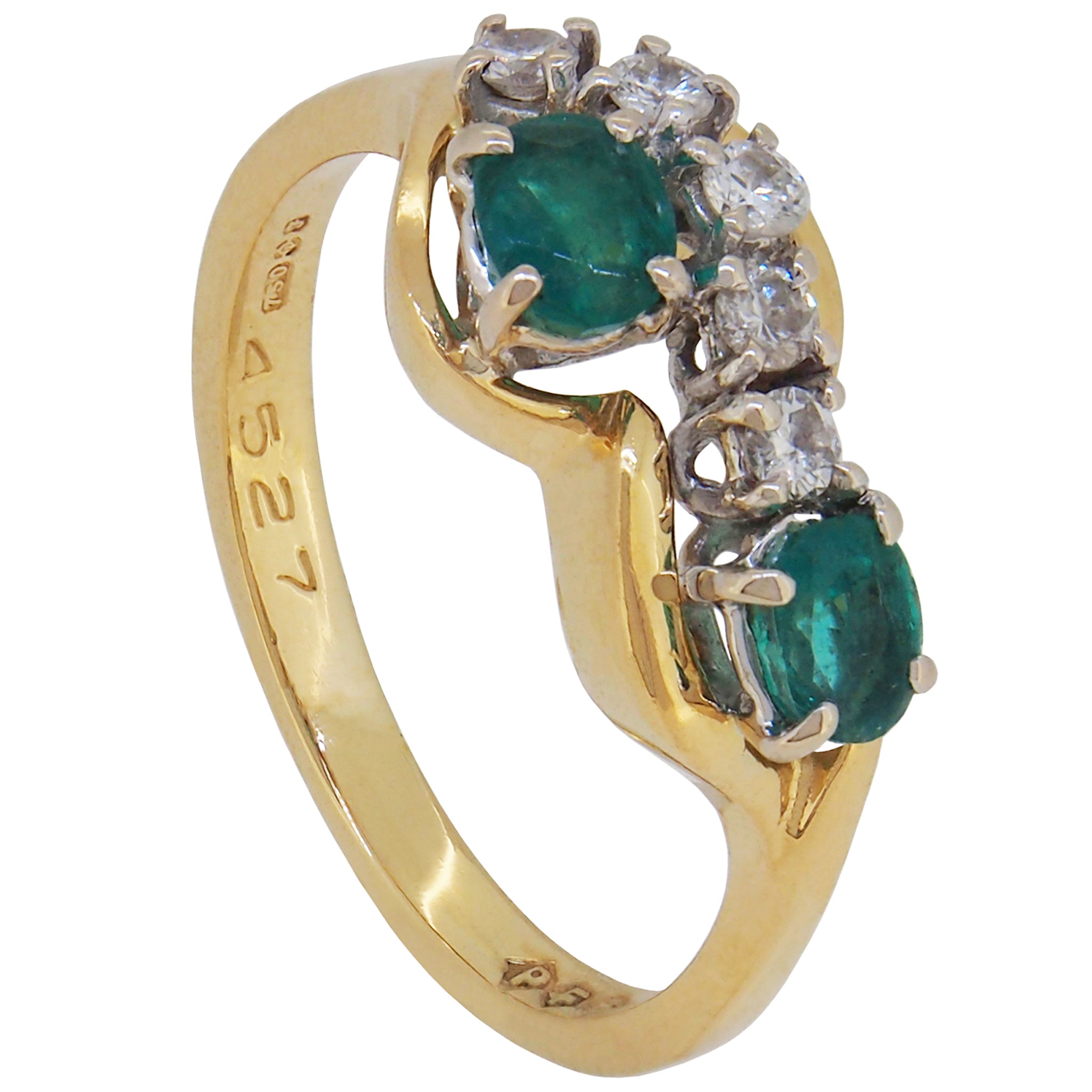 A modern, 18ct yellow gold, emerald & diamond set, seven stone abstract ring.