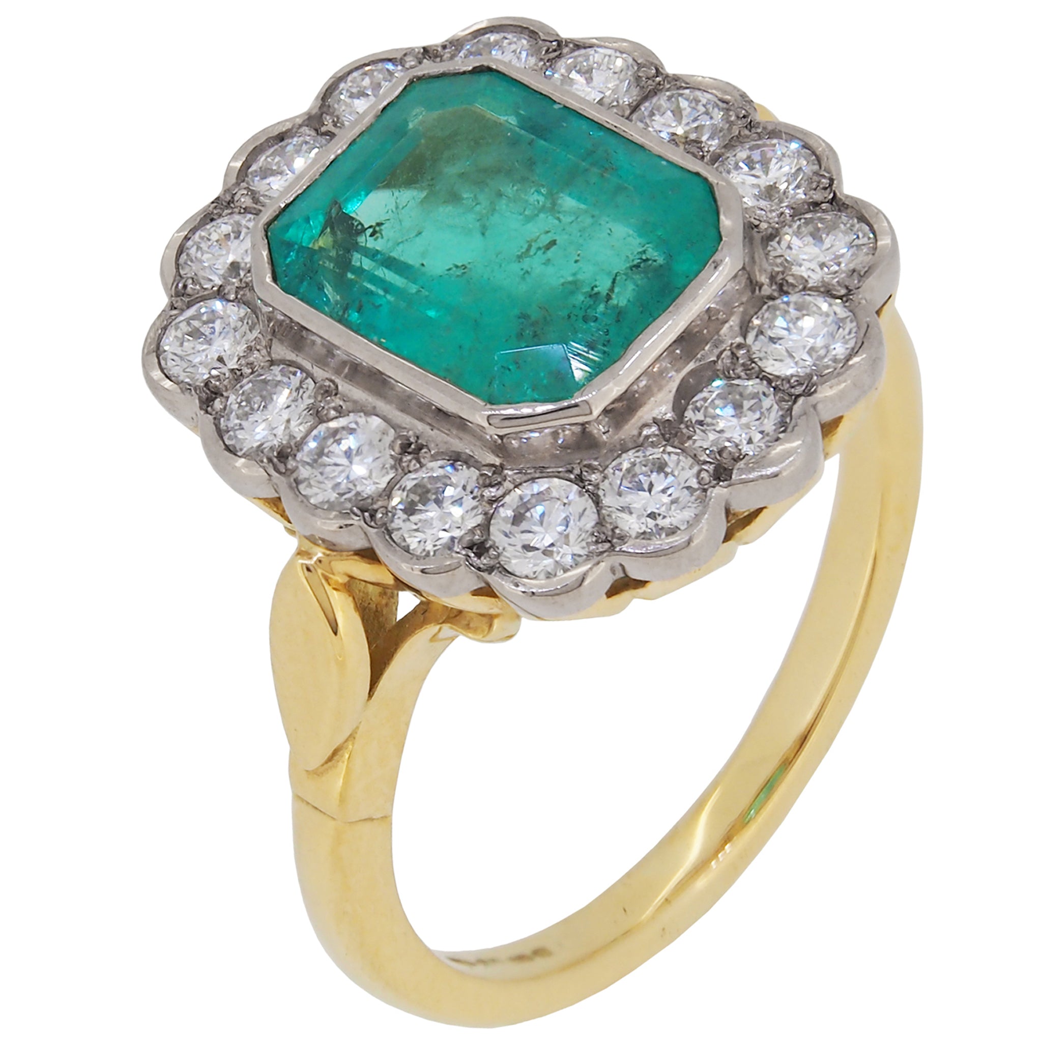 An 18ct yellow gold, emerald & diamond set cluster ring.