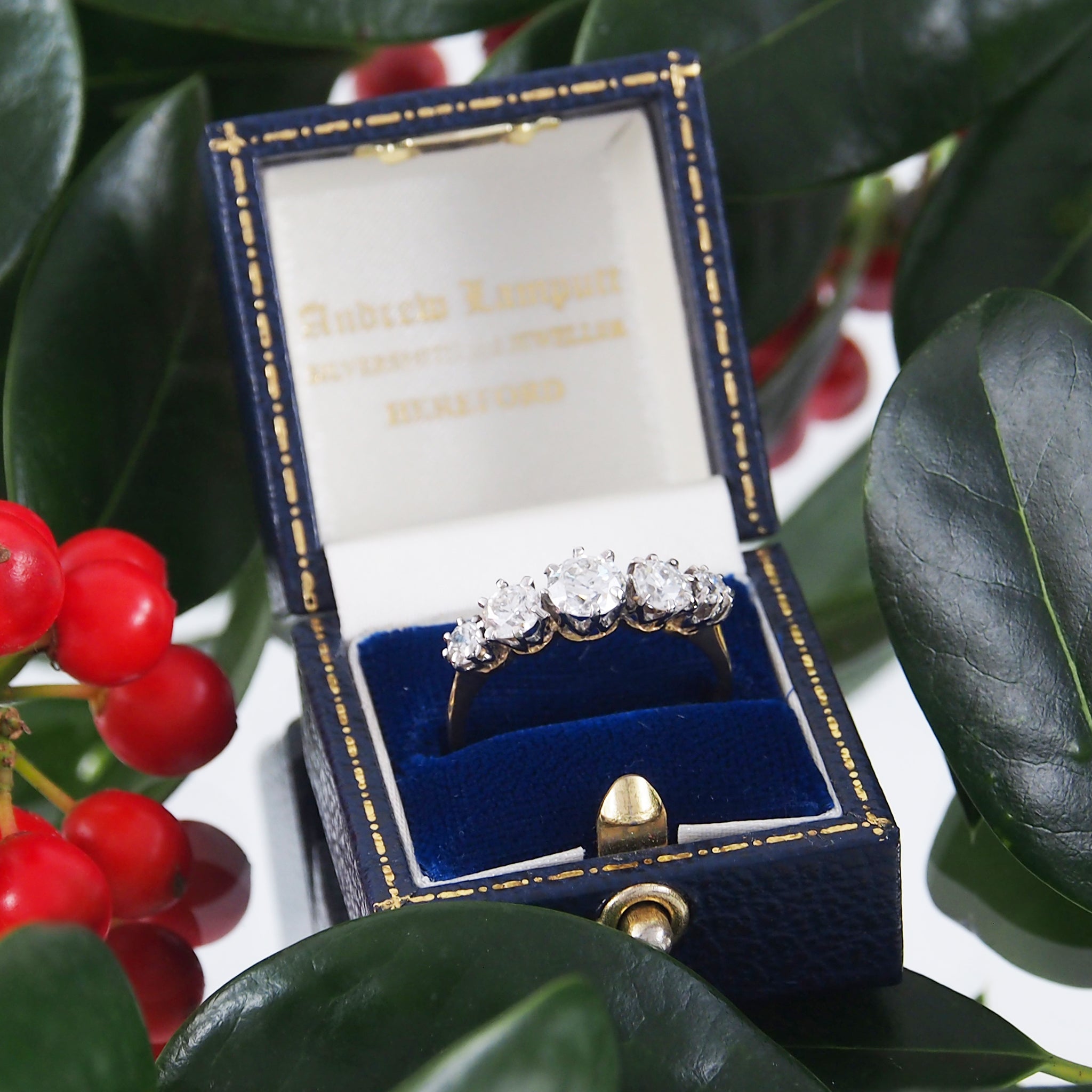 An early 20th century, 18ct yellow gold & platinum setting, diamond set, five stone half hoop ring.