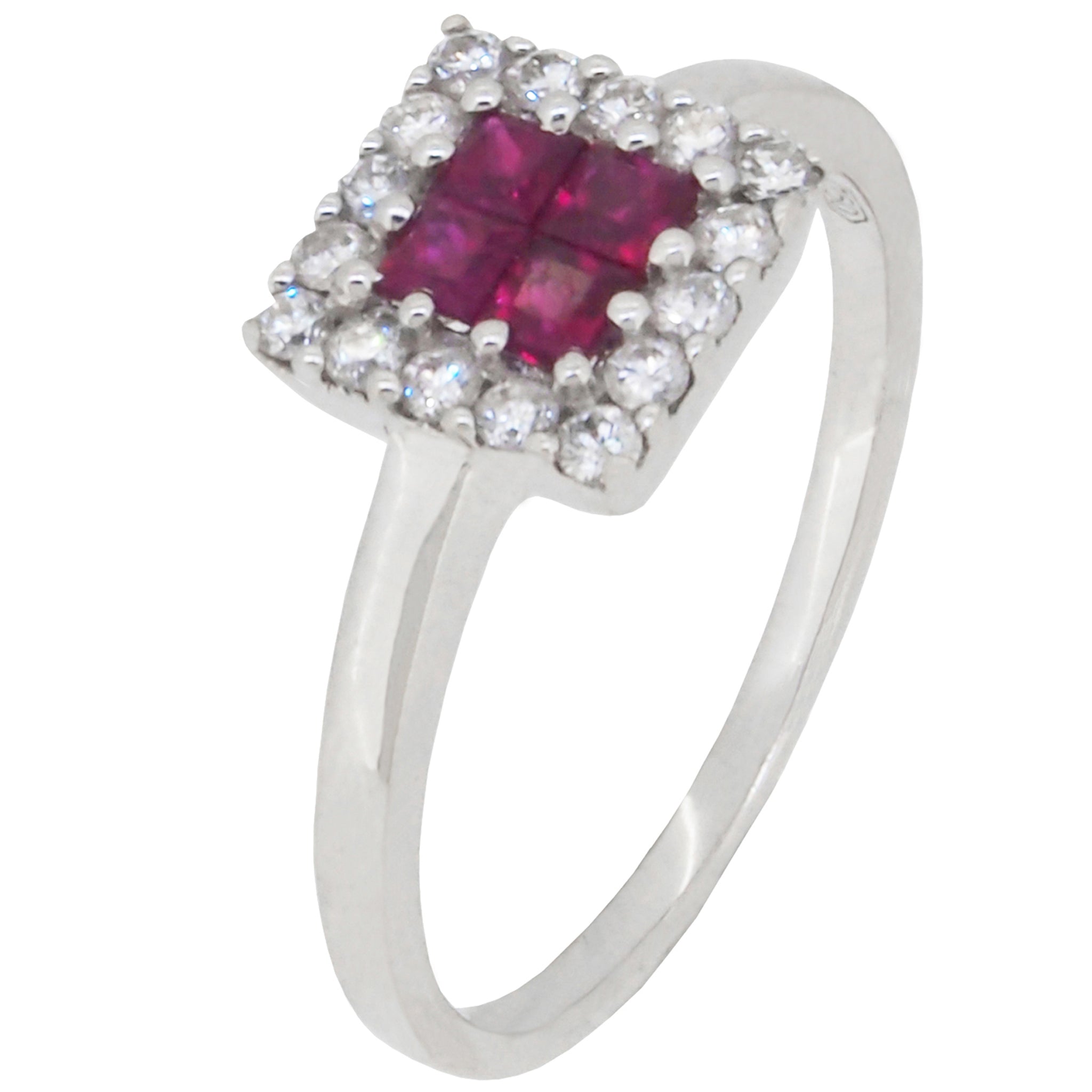 A modern, 18ct white gold, ruby & diamond set square cluster ring.