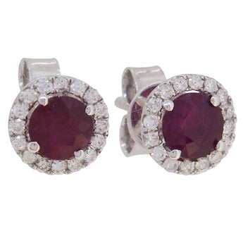 Ruby & Diamond Set Cluster Stud Earrings