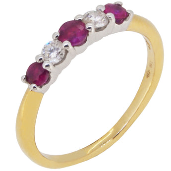 A modern, 18ct yellow gold, ruby & diamond set five stone ring.