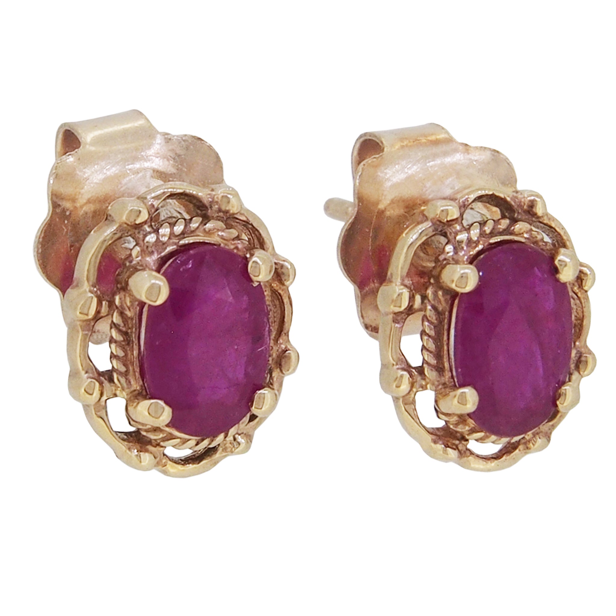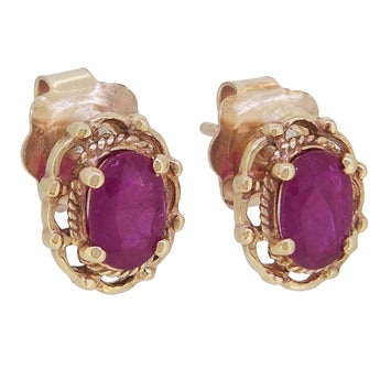 A pair of modern, 9ct yellow gold, ruby & diamond set stud earrings.