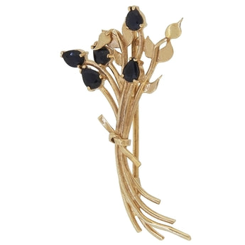 A modern, 9ct yellow gold, sapphire set spray brooch.