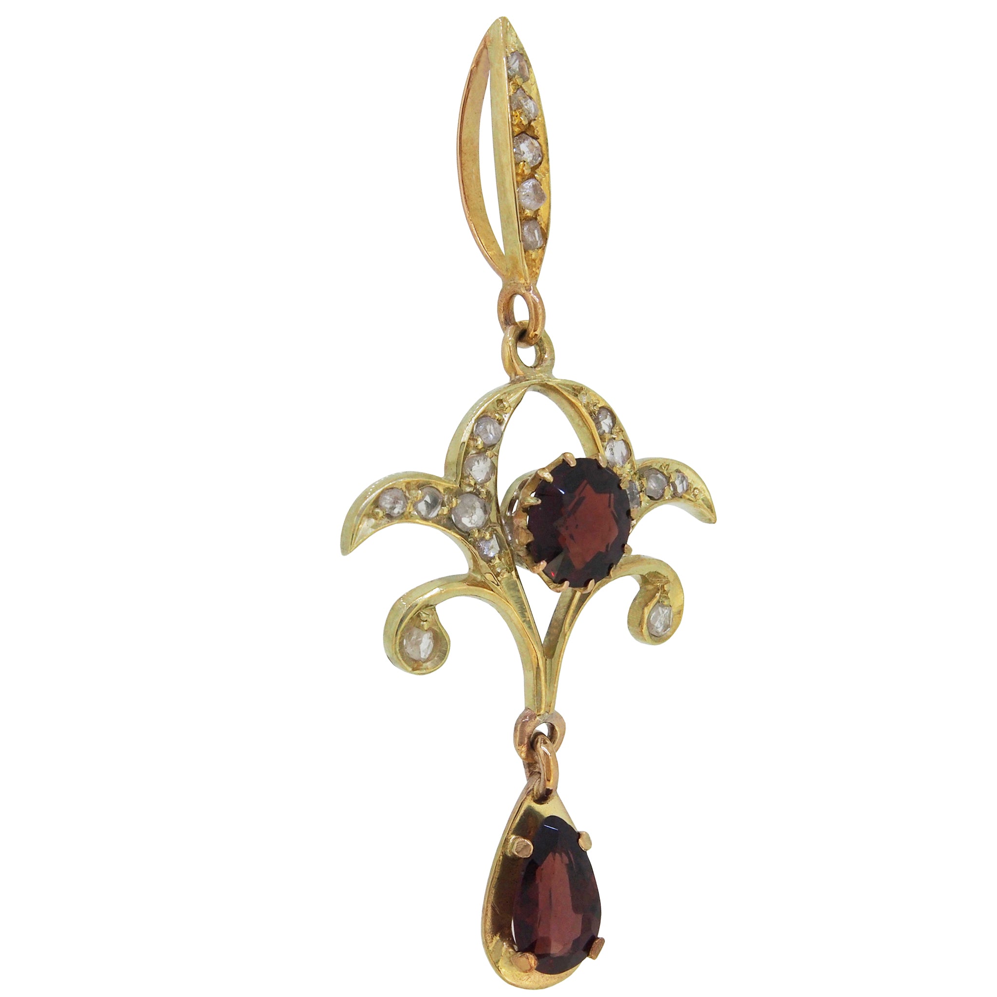 A mid-20th century, 9ct yellow gold, garnet & diamond set open work pendant.