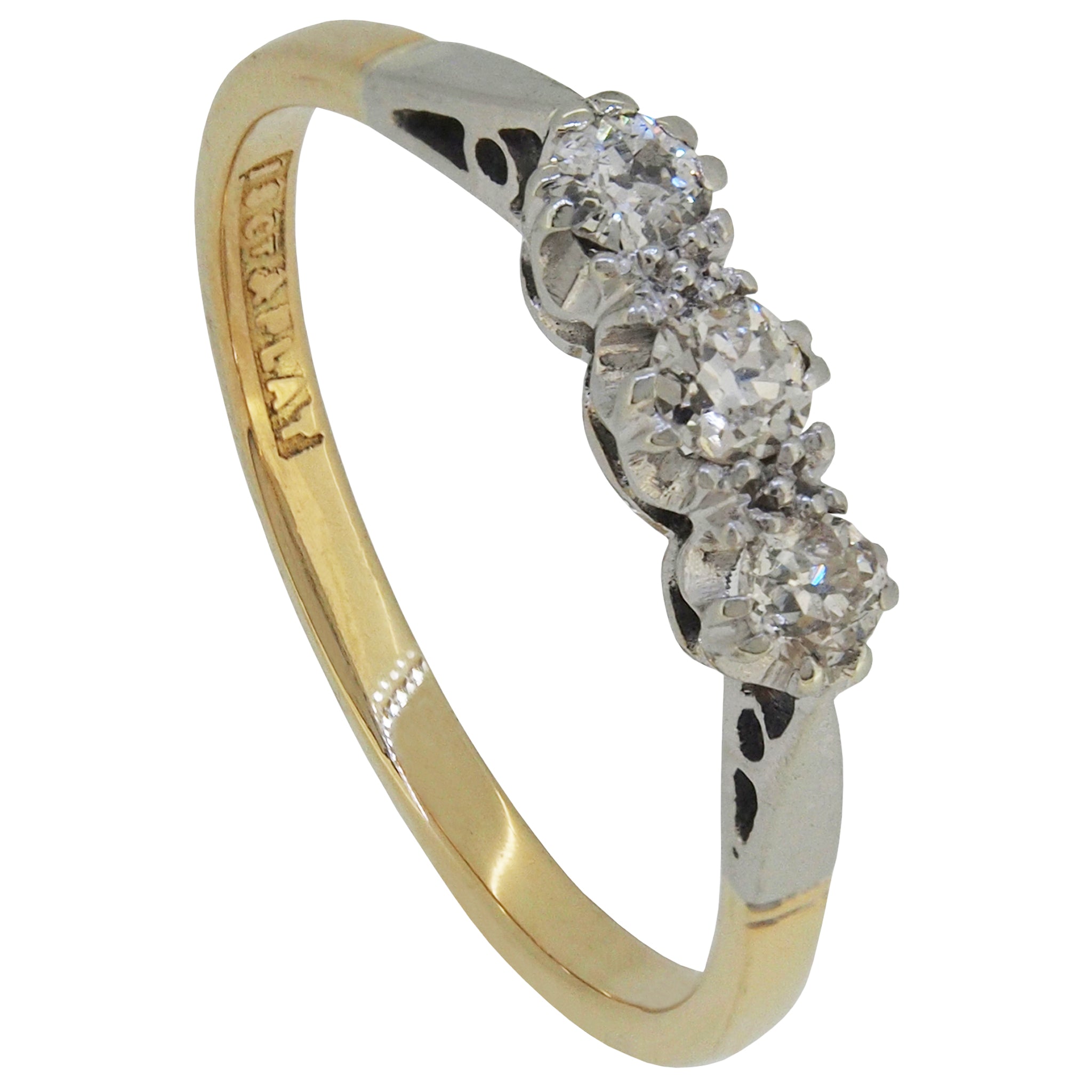 An early 20th century, 18ct yellow gold & platinum, diamond set three stone ring.