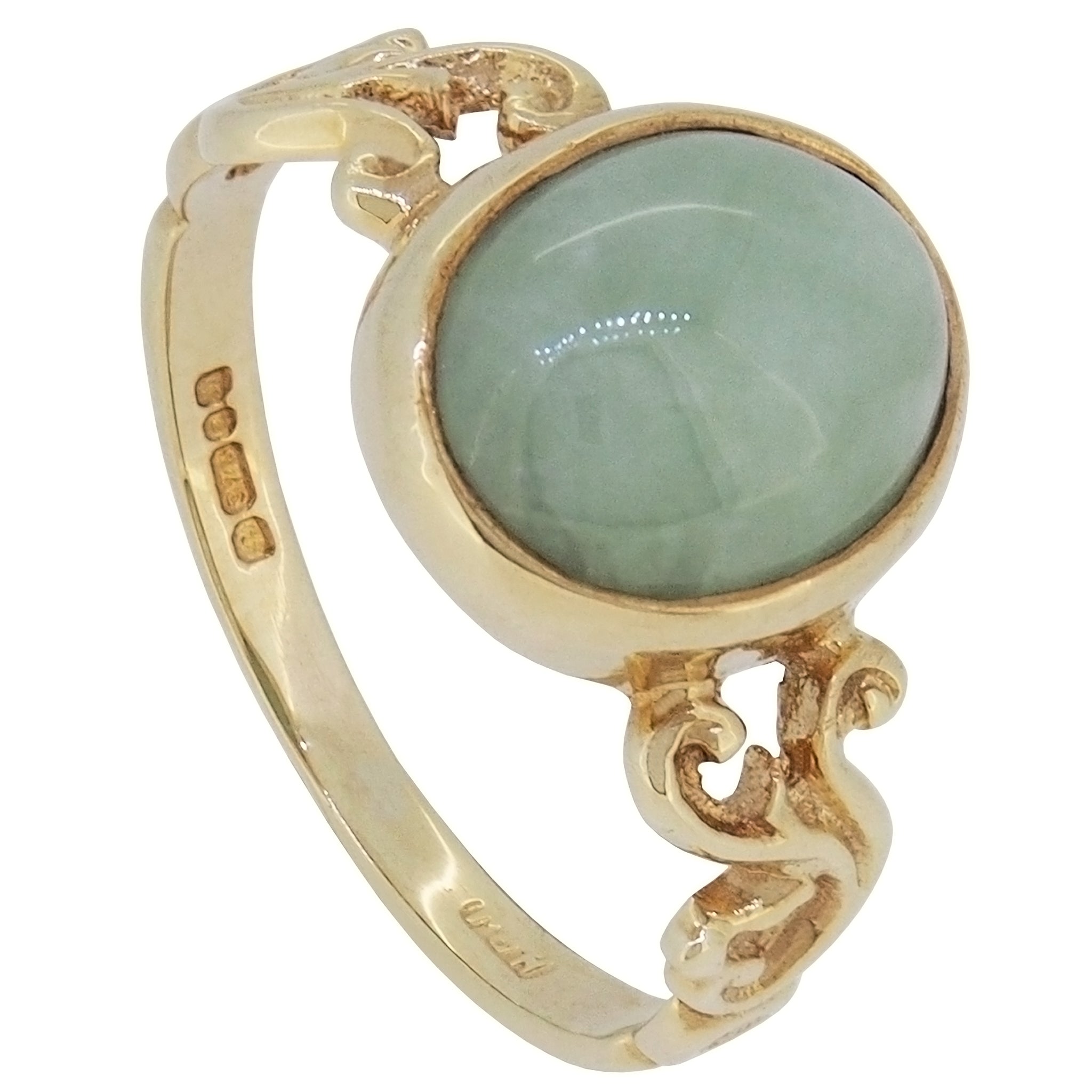 A modern, 9ct yellow gold, jade set, single stone ring.