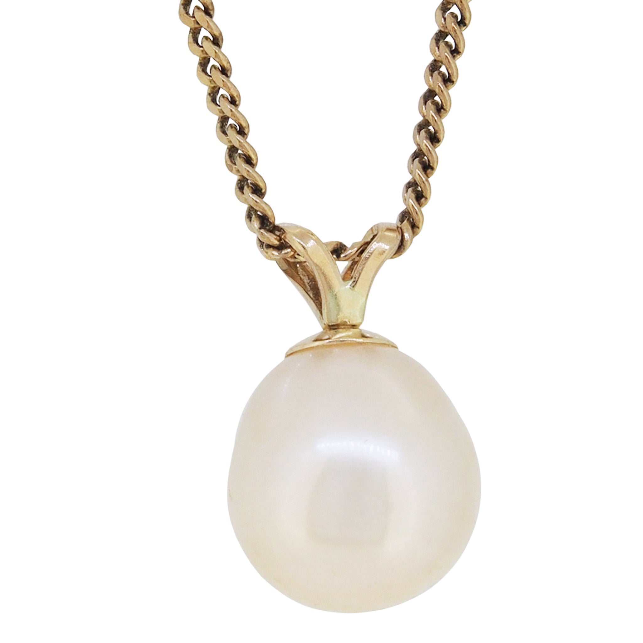 A modern, 9ct yellow gold, pearl set pendant & chain.