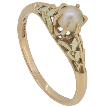 A modern, 14ct yellow gold, pearl set, single stone ring.
