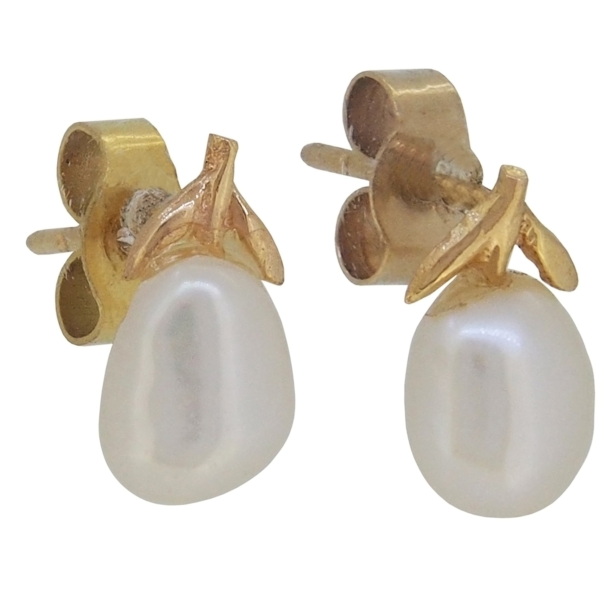 A pair of modern, 9ct yellow gold, cultured freshwater pearl set stud earrings.