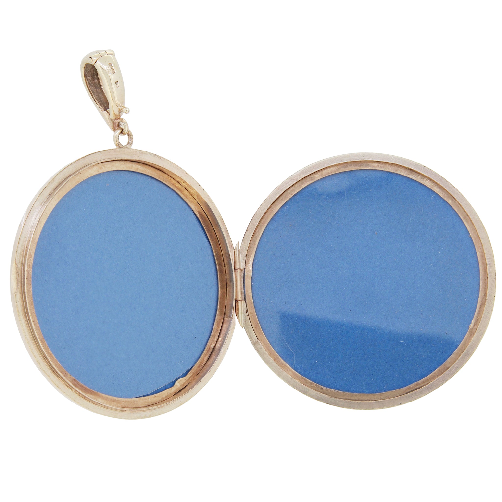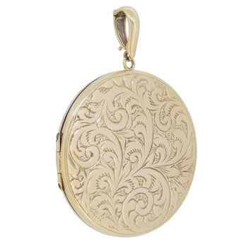 A 9ct yellow gold, large circular, engraved locket.