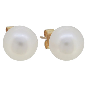 A pair modern, of 9ct yellow gold, cultured pearl set stud earrings.