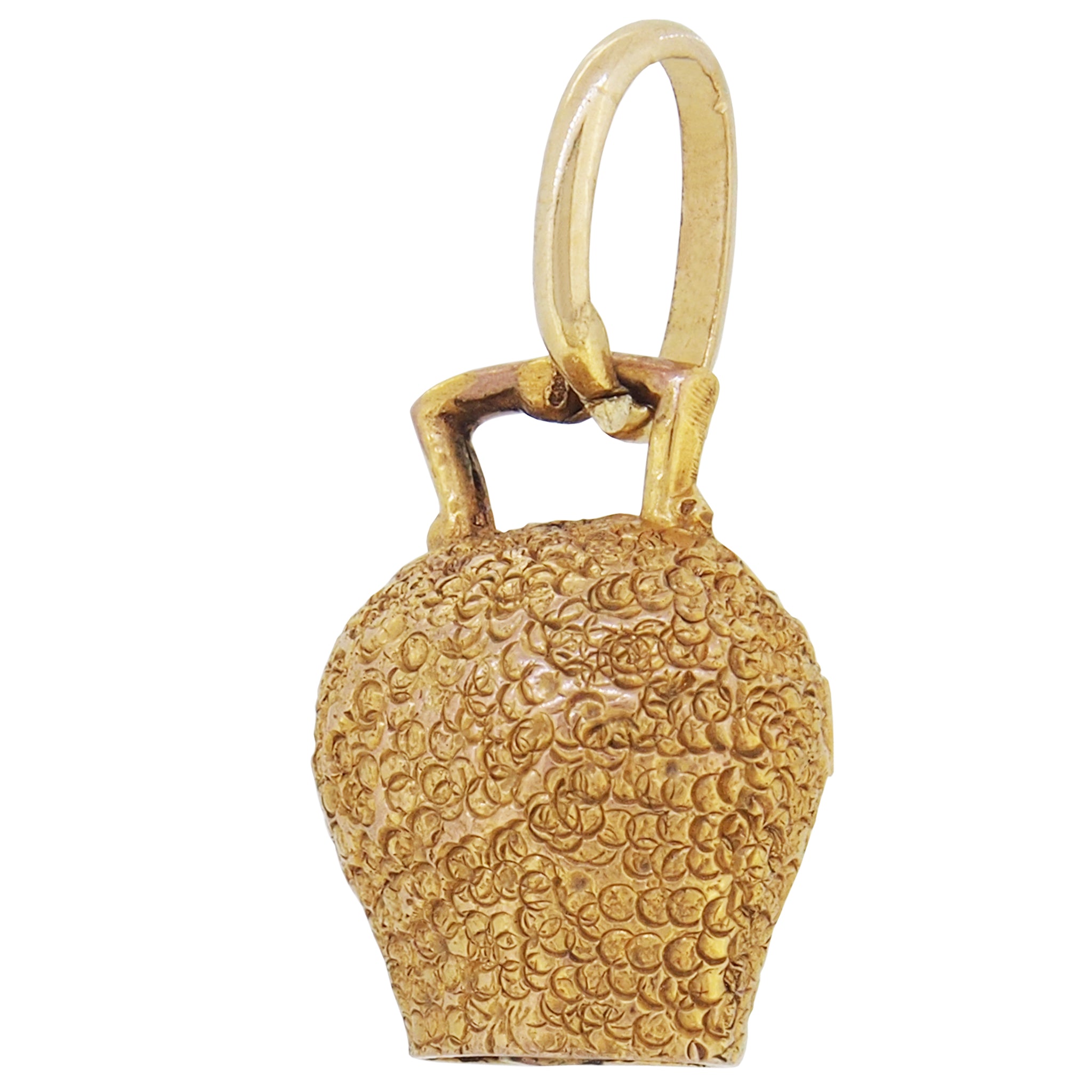 A mid-20th century, 9ct yellow gold cowbell charm.