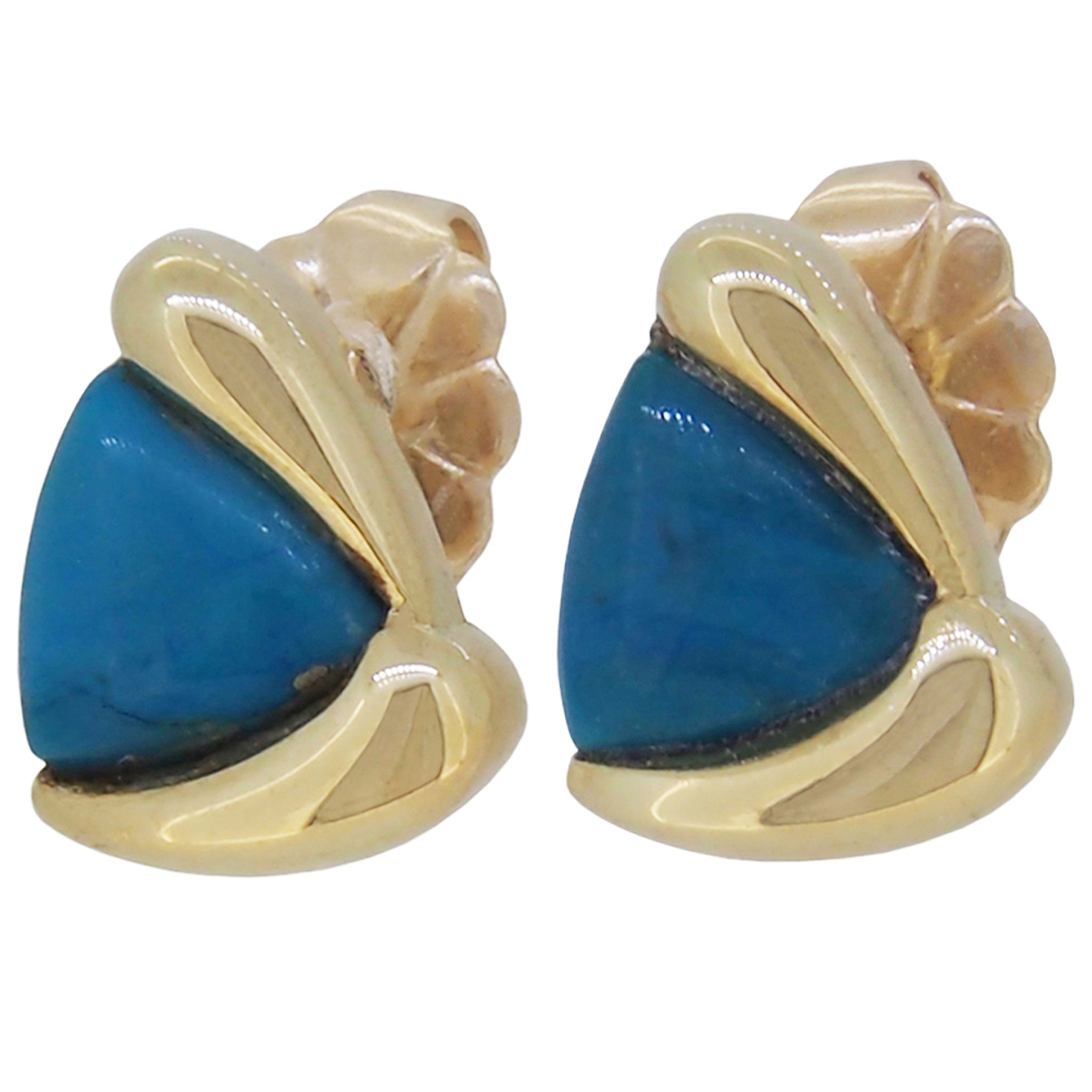 A pair of early 20th century, 14ct yellow gold, turquoise set stud earrings.