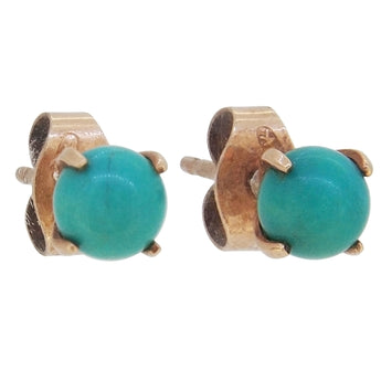 A pair of modern, 9ct yellow gold, turquoise set stud earrings.
